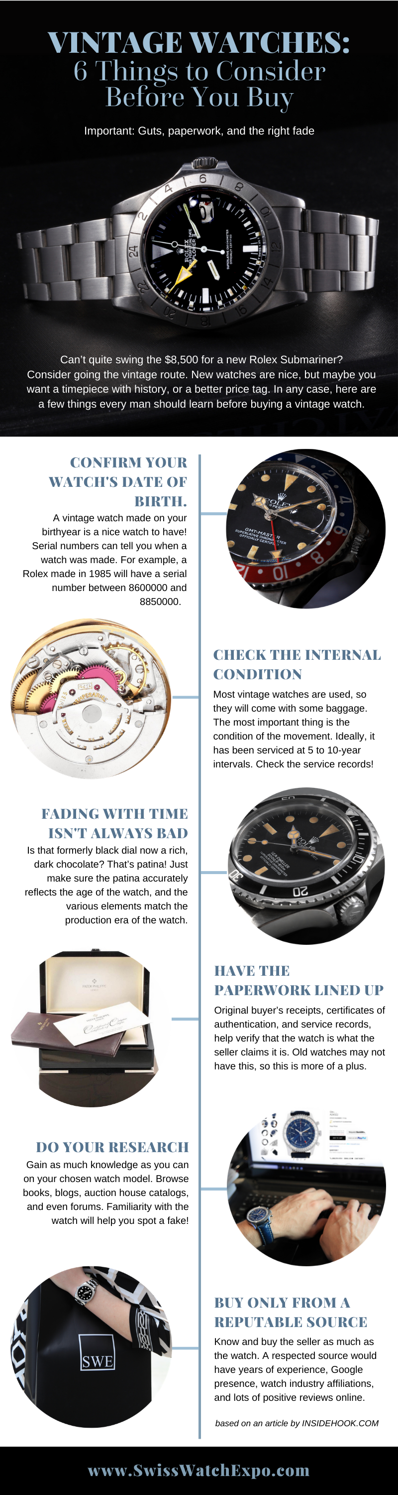 Based on InsideHook.com’s Six Things to Consider When Buying a Vintage Watch.