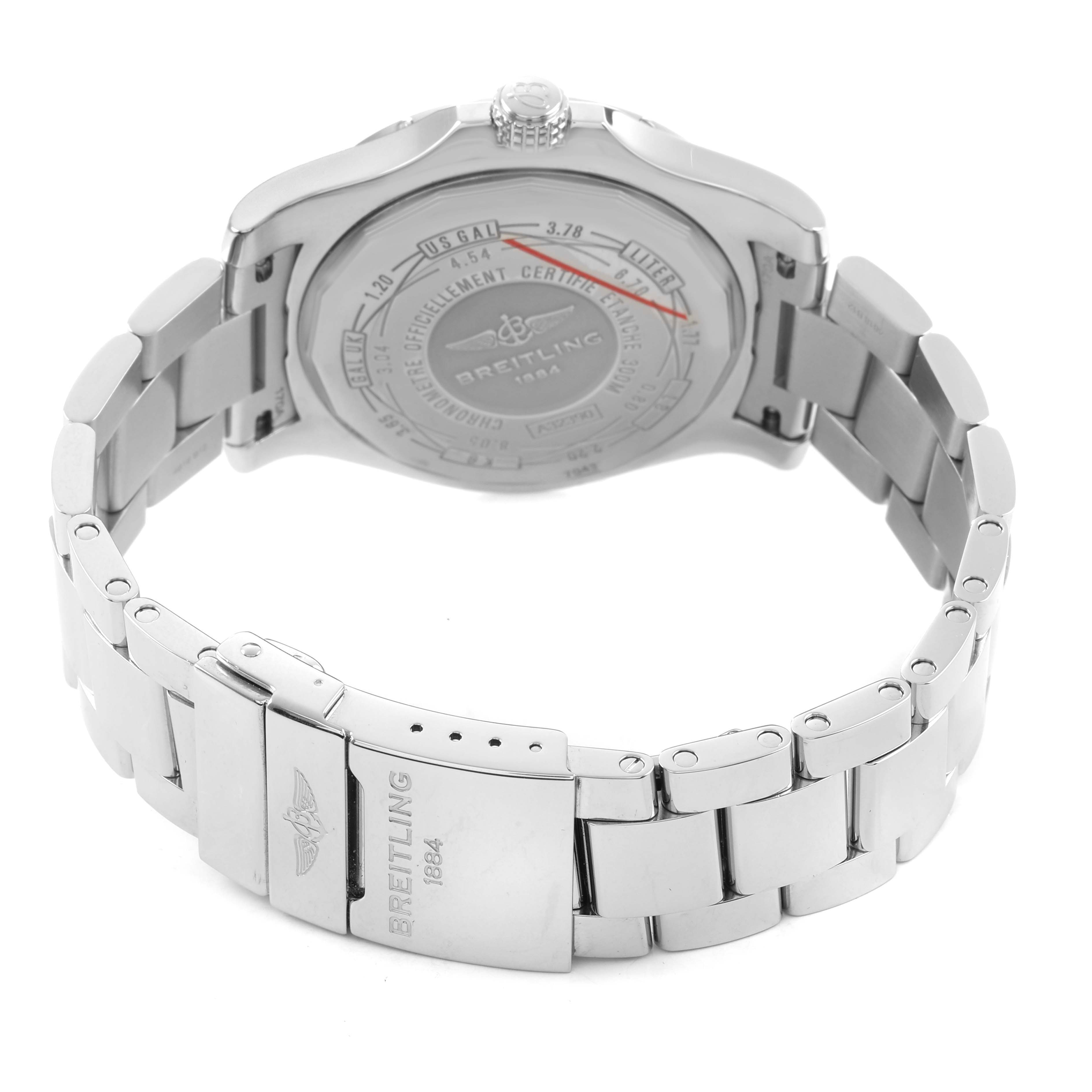 | Case: | Stainless steel round case 43.0 mm in diameter. Breitling logo on the screw-down crown. Pointed crown guards. |