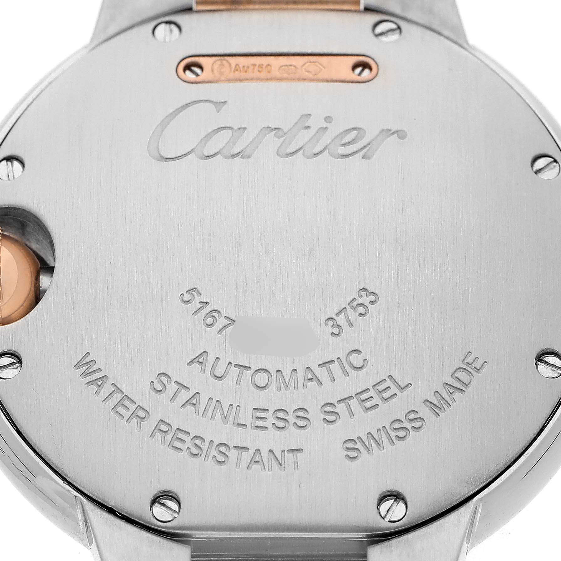 | Model Name: | Cartier Ballon Bleu 33 Diamond Dial Steel Rose Gold Ladies Watch WE902077 Card |
