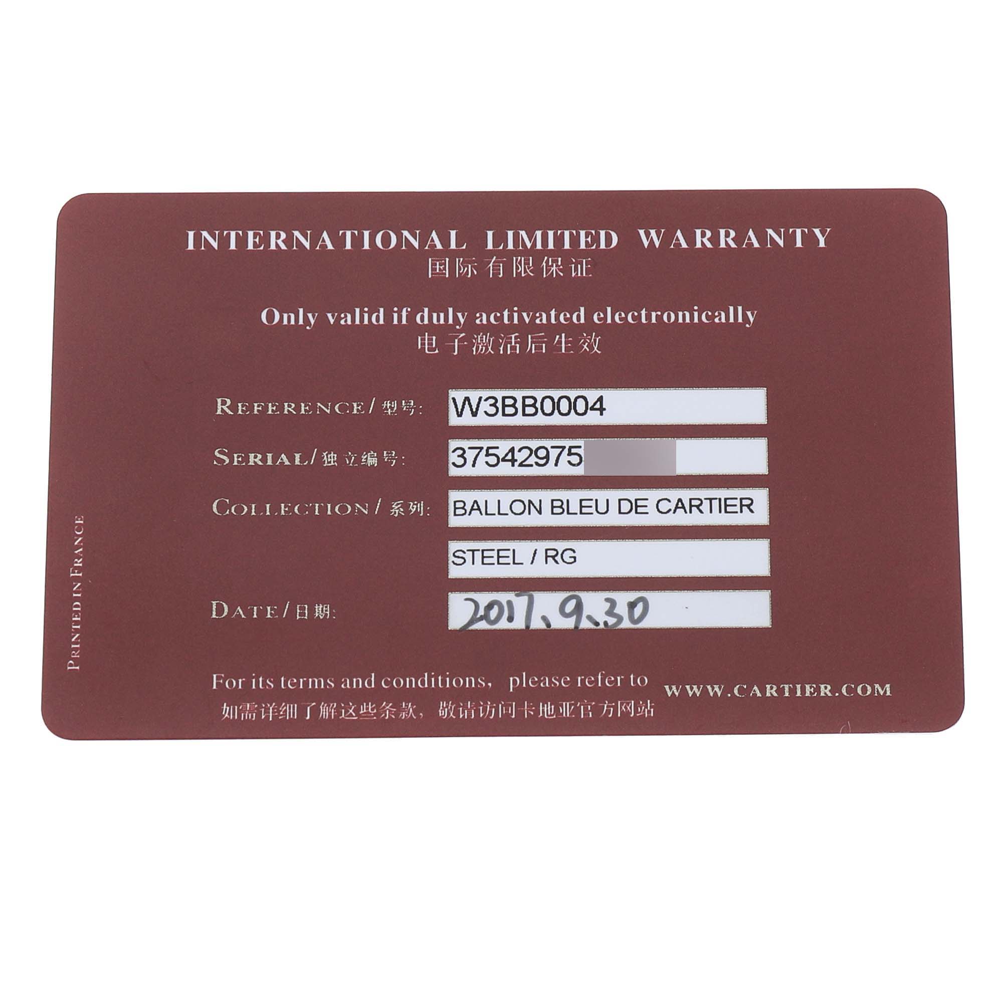 | Model Name: | Cartier Ballon Bleu 36 Steel Rose Gold Diamond Dial Ladies Watch W3BB0004 Card |