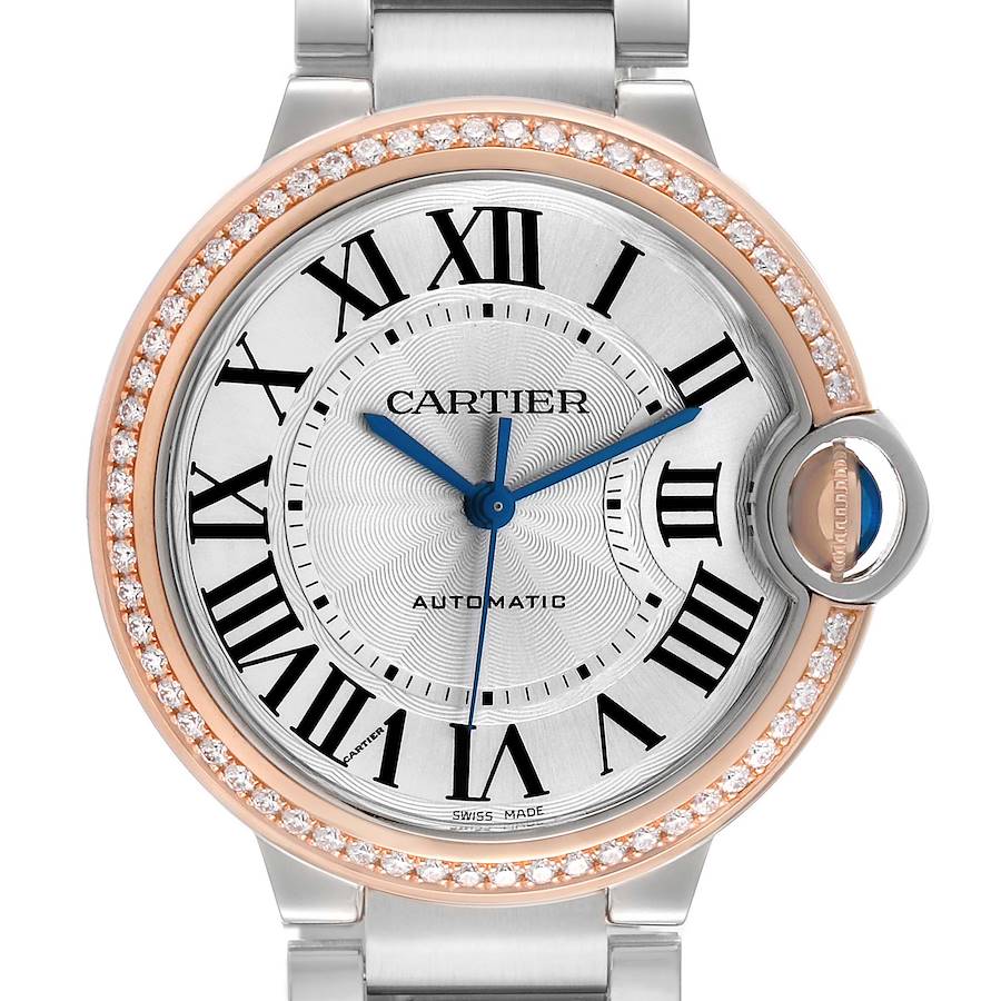 | Model Name: | Cartier Ballon Bleu 36 Steel Rose Gold Diamond Ladies Watch WE902081 Papers |