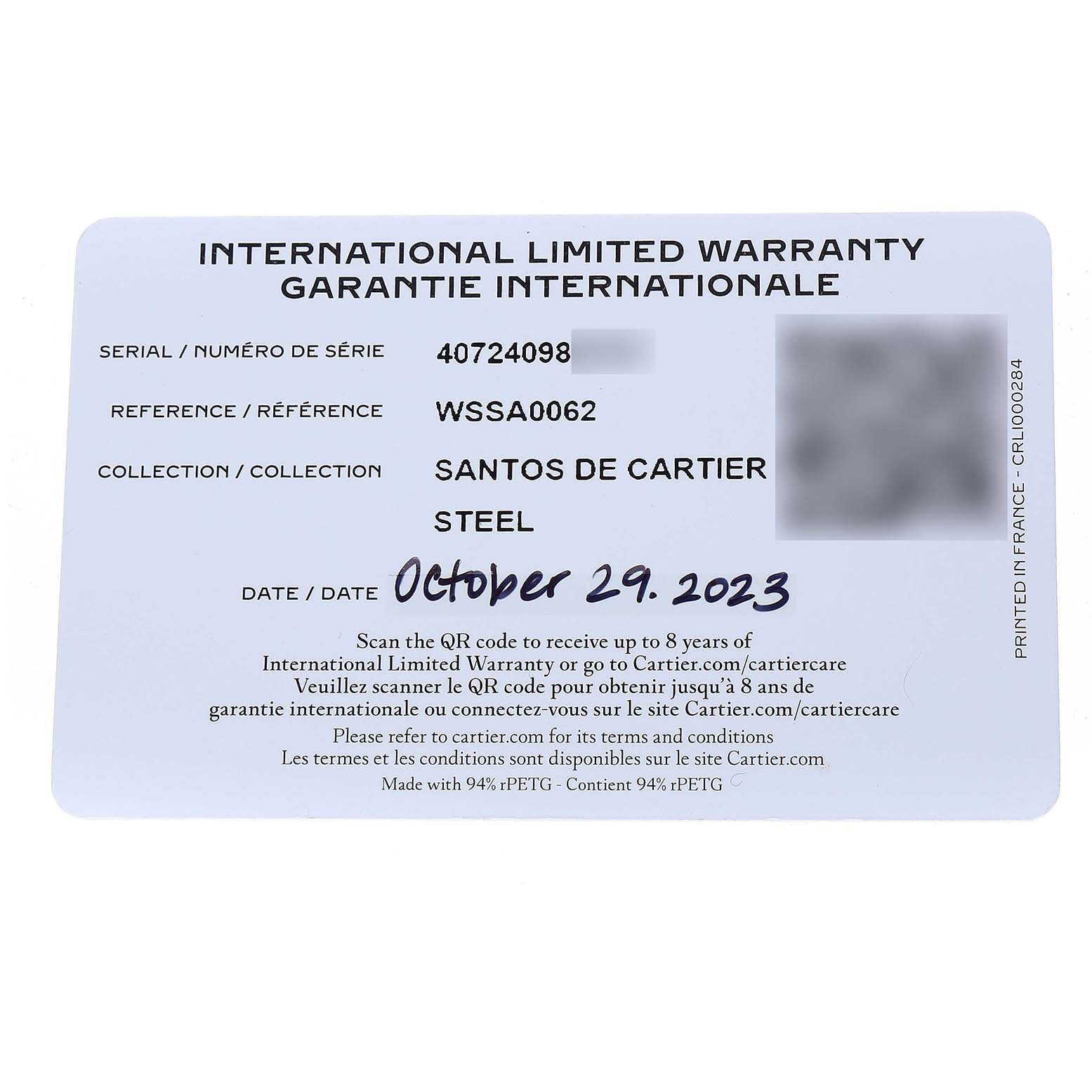 | Model Name: | Cartier Santos Large Steel Green Dial Mens Watch WSSA0062 Box Card |