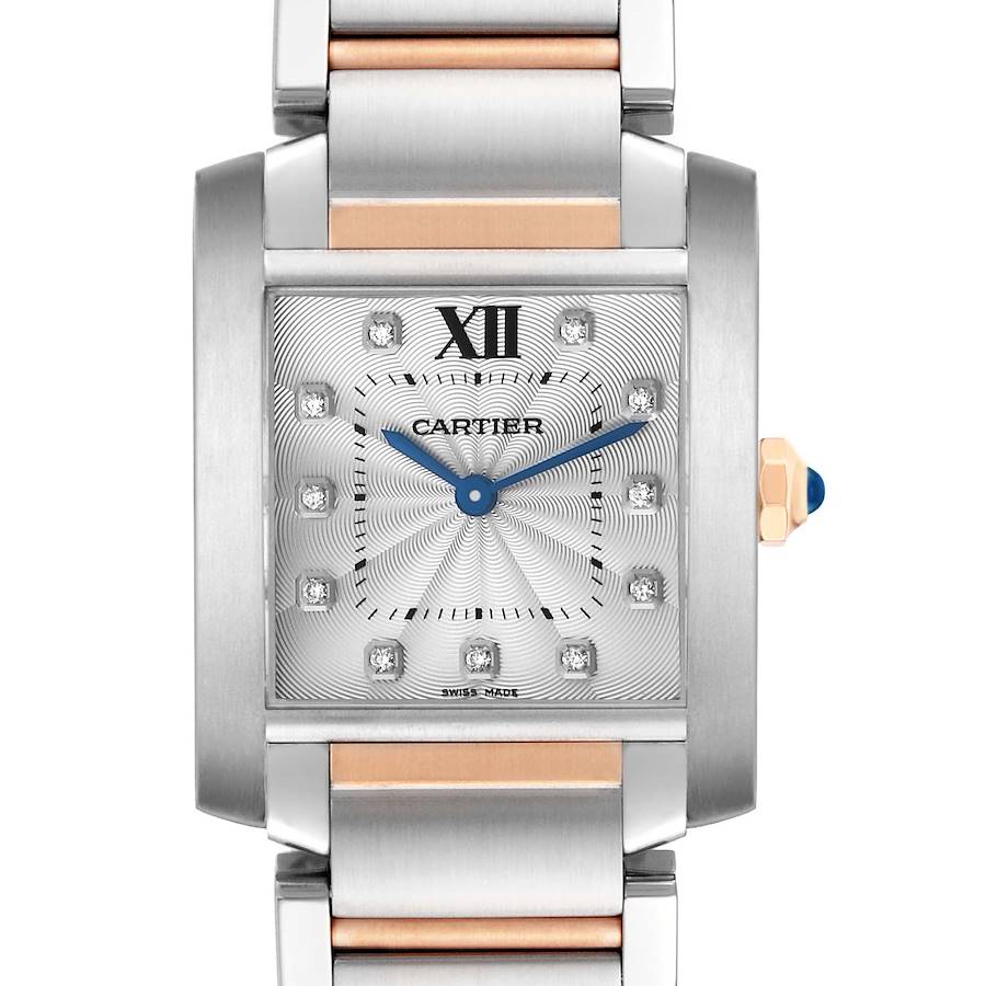 | Model Name: | Cartier Tank Francaise Midsize Steel Rose Gold Diamond Watch WE110005 Papers |