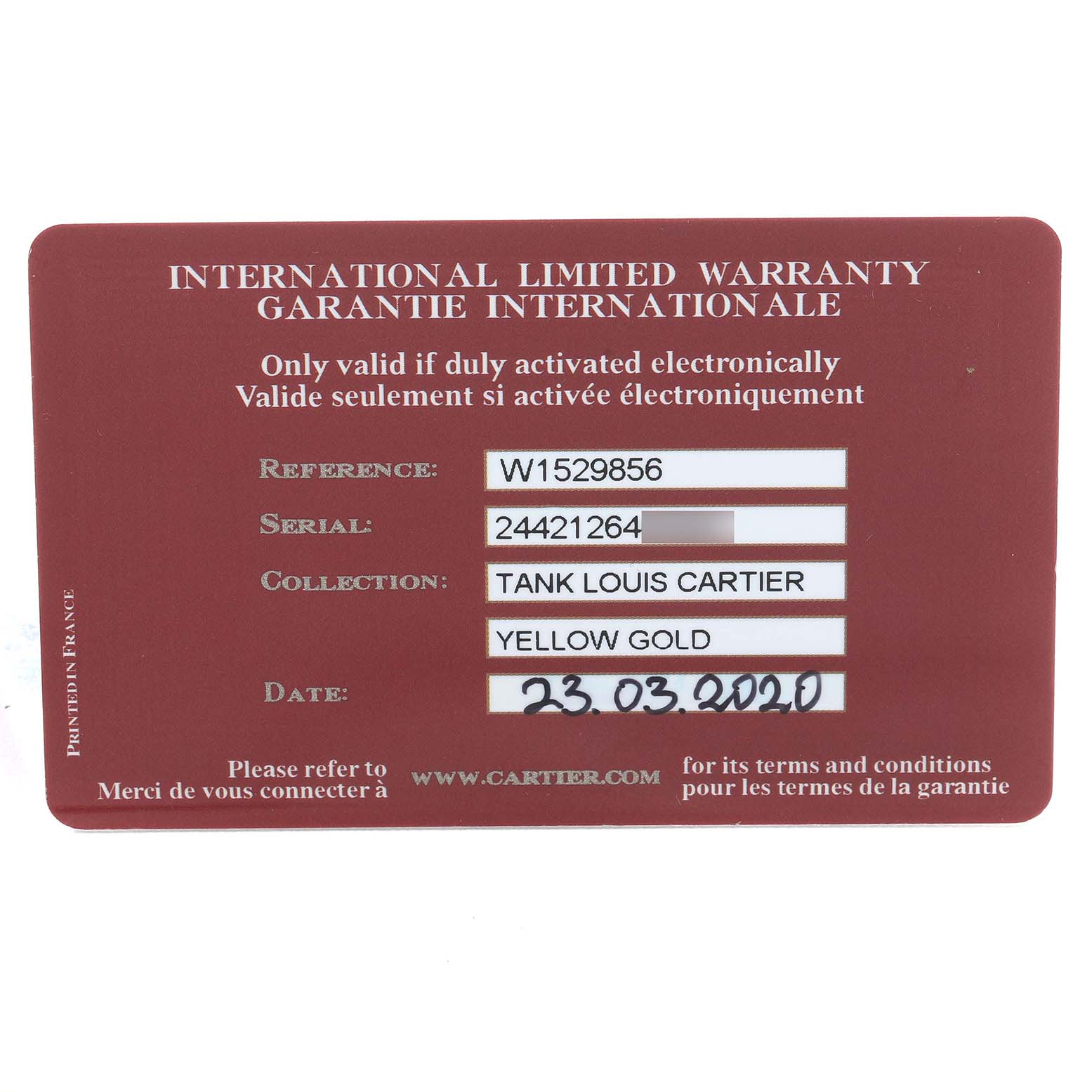 | Model Name: | Cartier Tank Louis Small Yellow Gold Silver Dial Ladies Watch W1529856 Card |