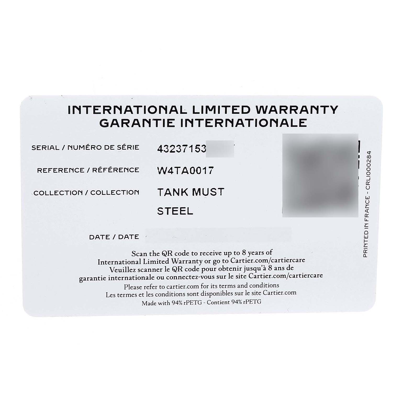 | Box & Papers: | Cartier card. Presentation non-Cartier box. Exclusive SwissWatchExpo Certificate of Authenticity. |