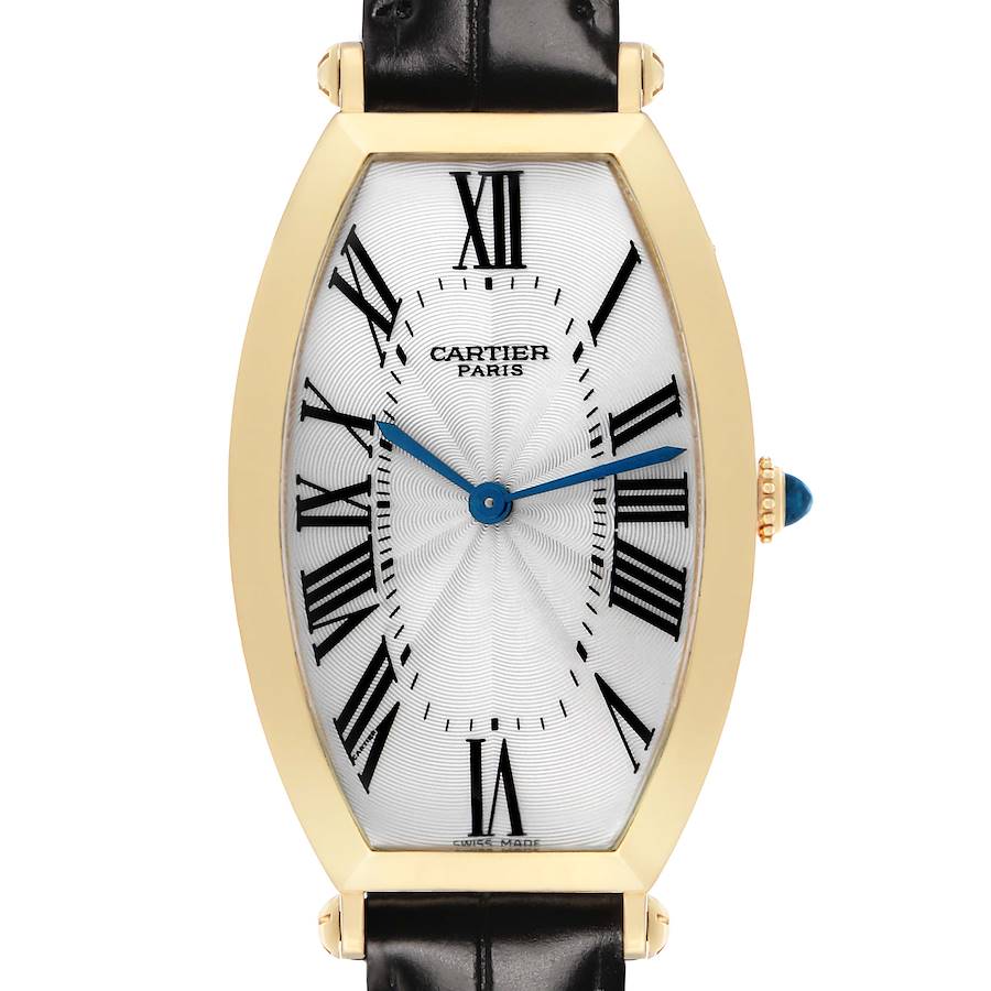 | Model Name: | Cartier Tonneau CPCP Yellow Gold Silver Dial Mens Watch W1527651 Box Papers |