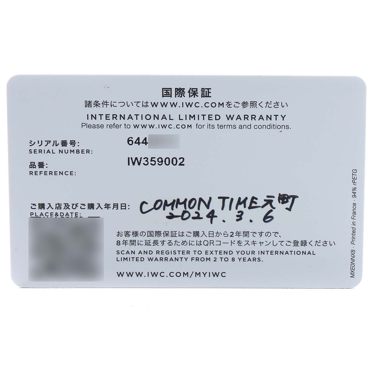 | Box & Papers: | IWC box and card. Exclusive SwissWatchExpo Certificate of Authenticity. |