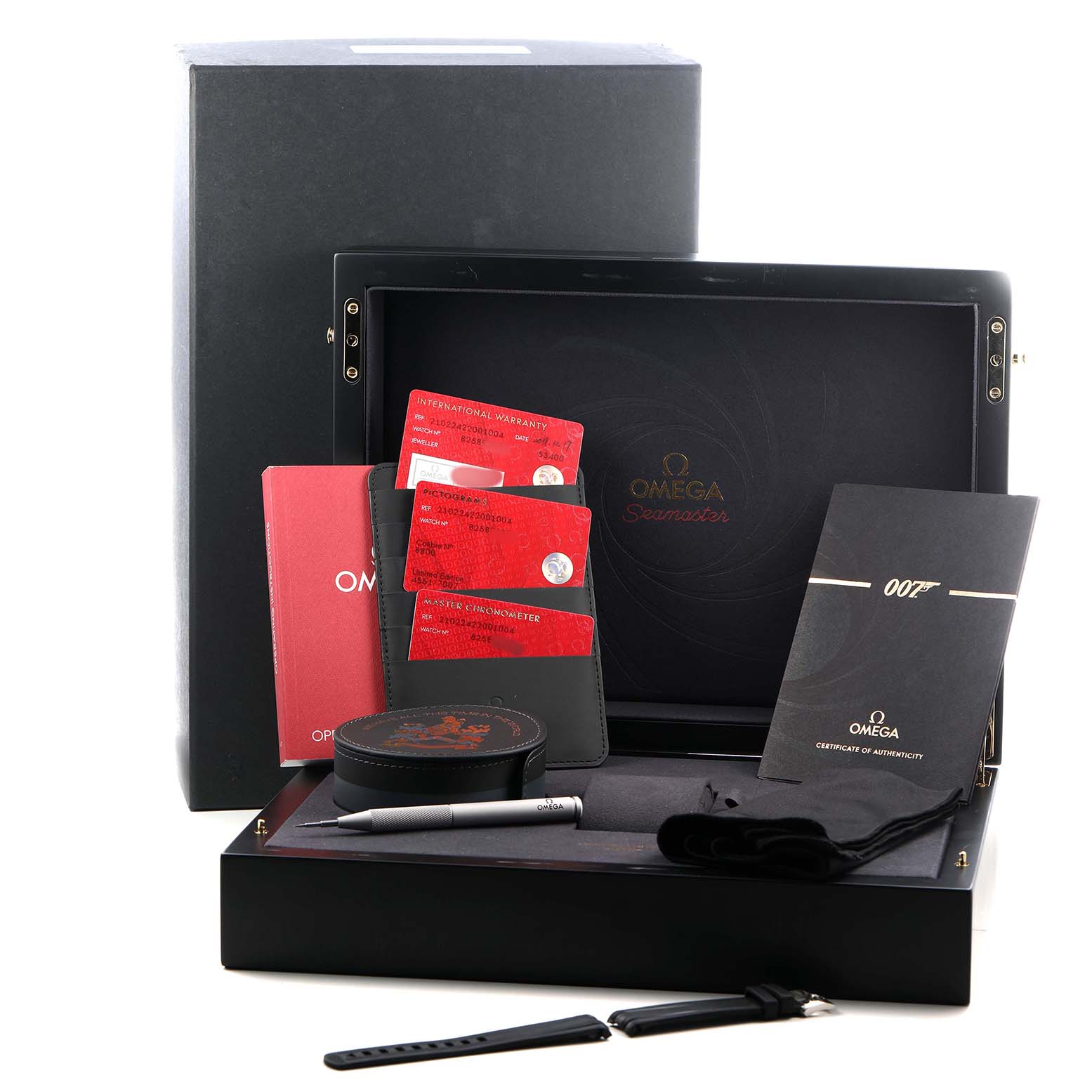 | Box & Papers: | Omega box and card. Exclusive SwissWatchExpo Certificate of Authenticity. Additional rubber strap. |