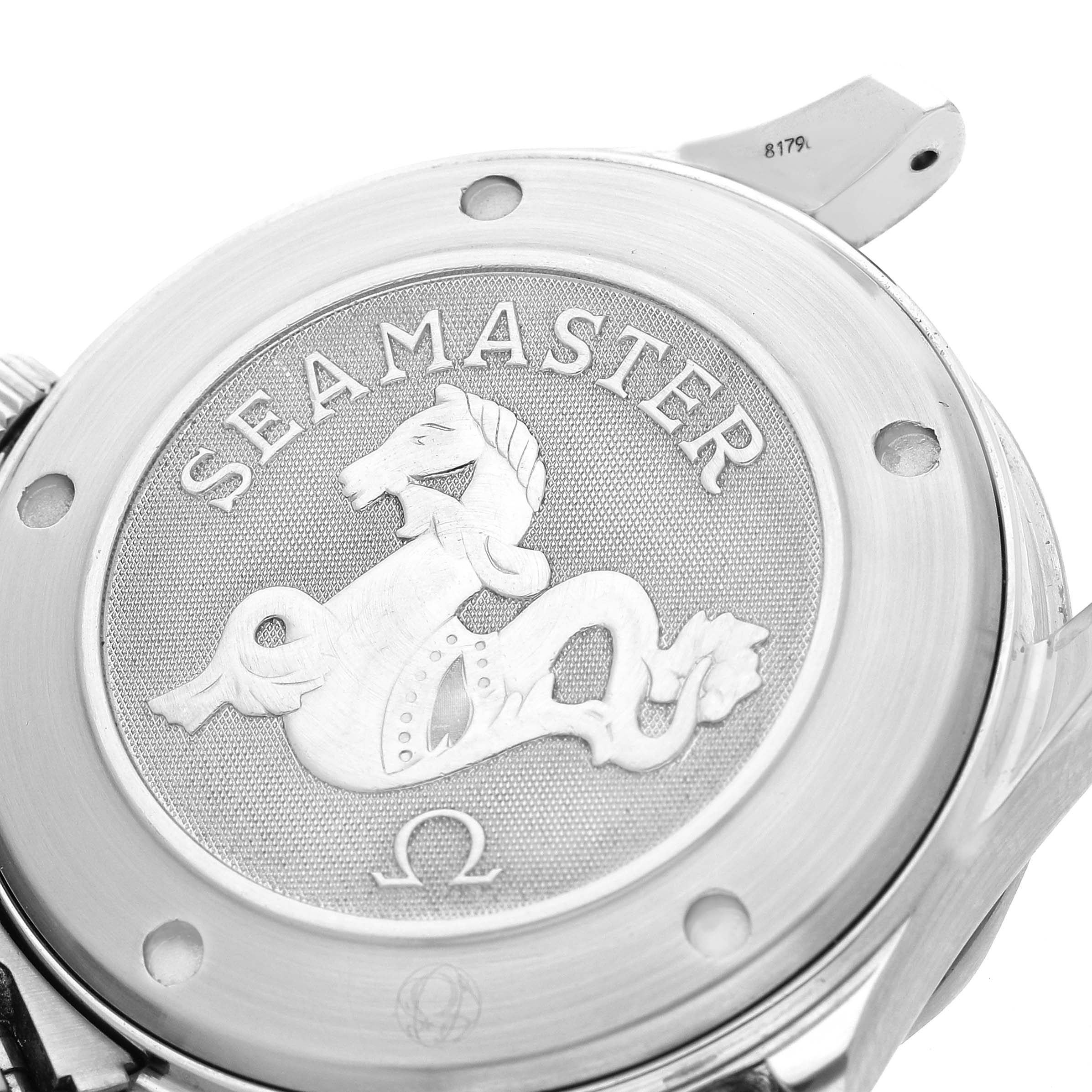 | Case: | Stainless steel round case 41.0 mm in diameter. Helium escape valve at 10 o'clock. Pointed crown guards. Omega logo on the crown. |