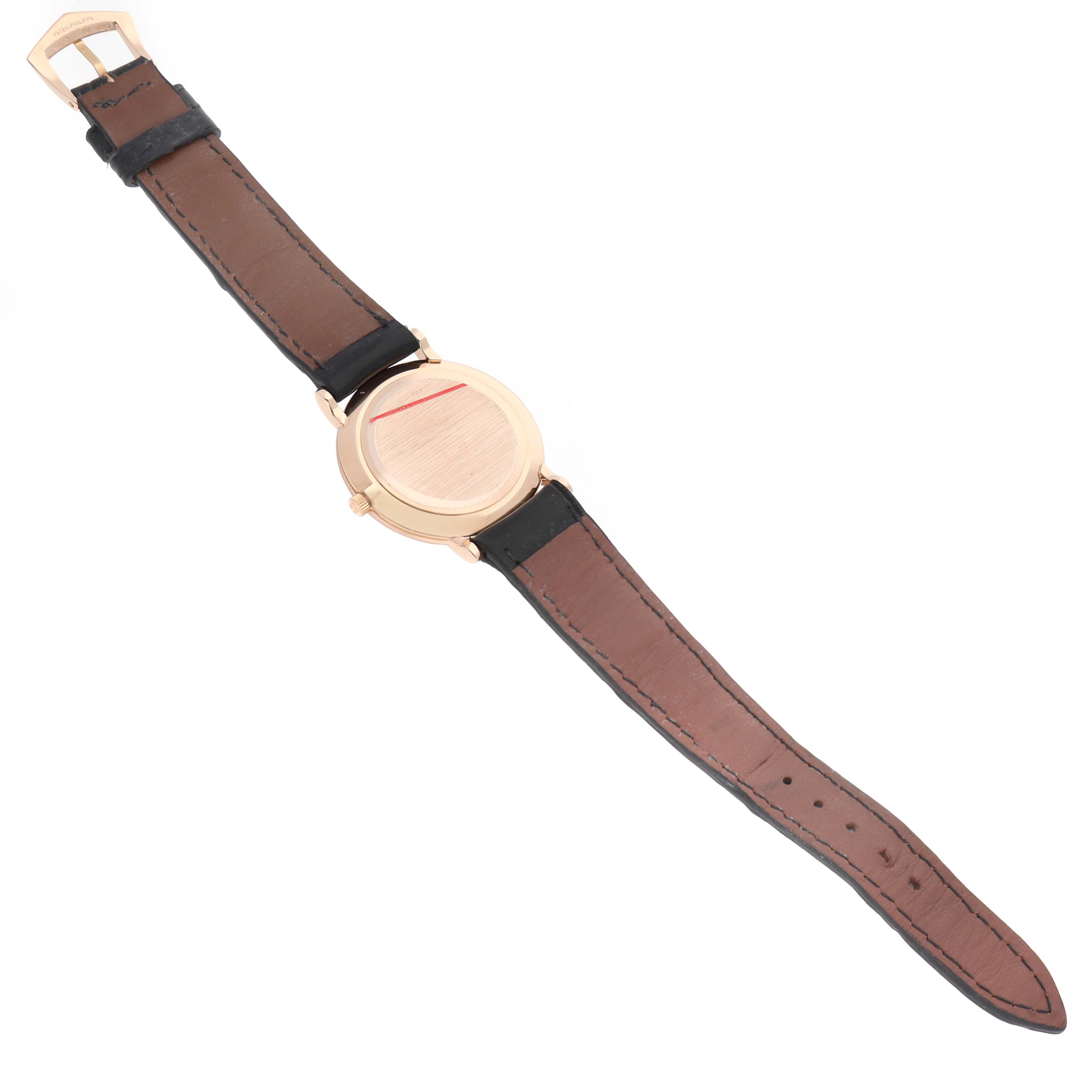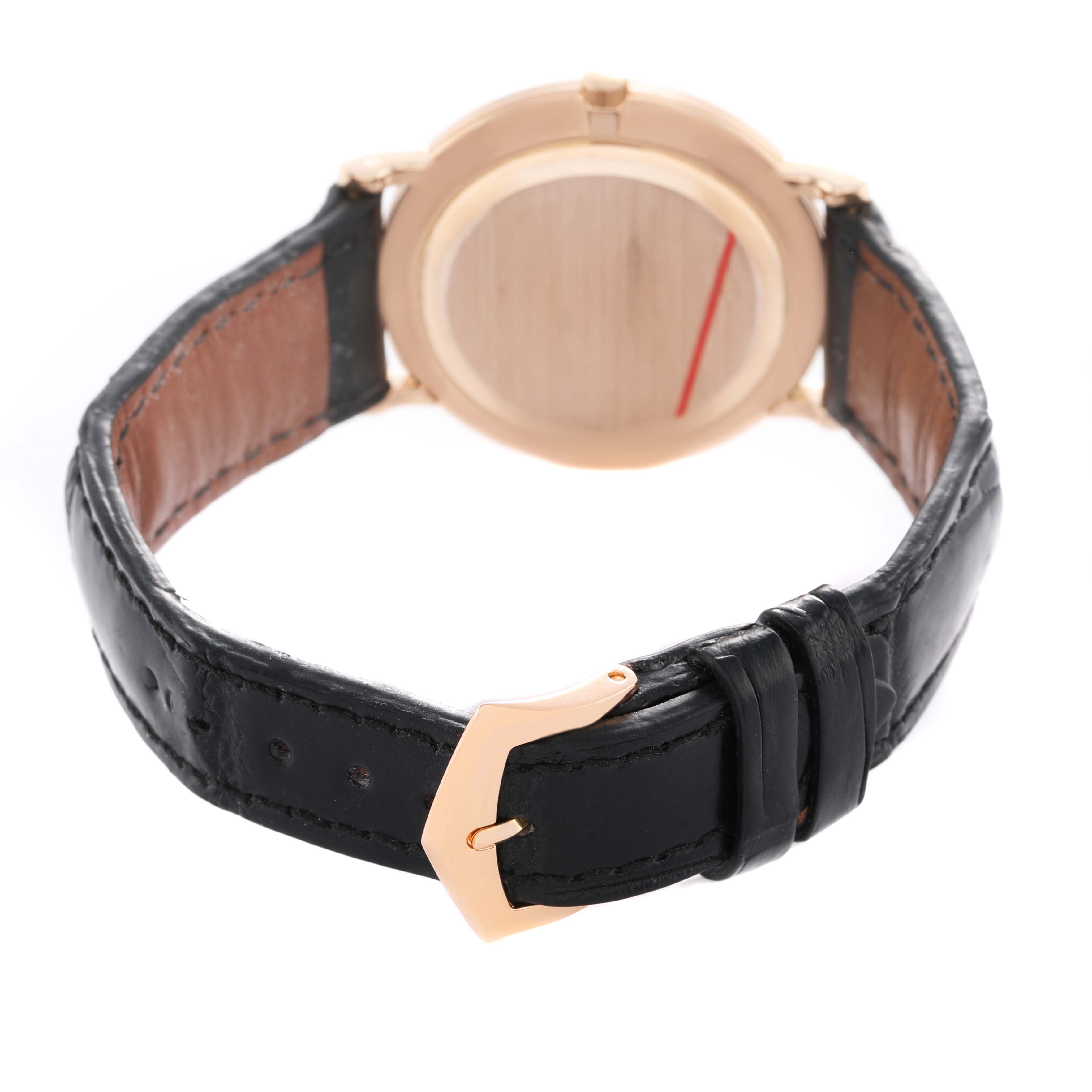 | Bracelet: | Custom black leather strap with an 18K rose gold tang buckle. |