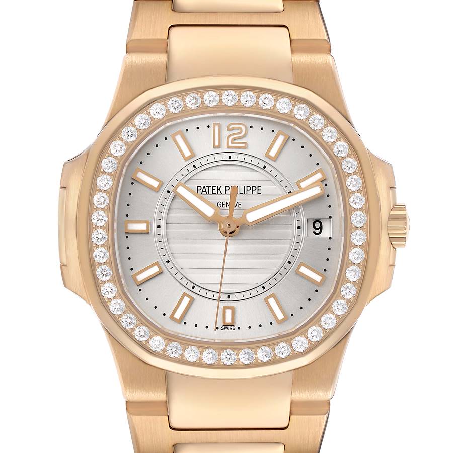 | Model Name: | Patek Philippe Nautilus Date Rose Gold Diamond Bezel Ladies Watch 7010 |