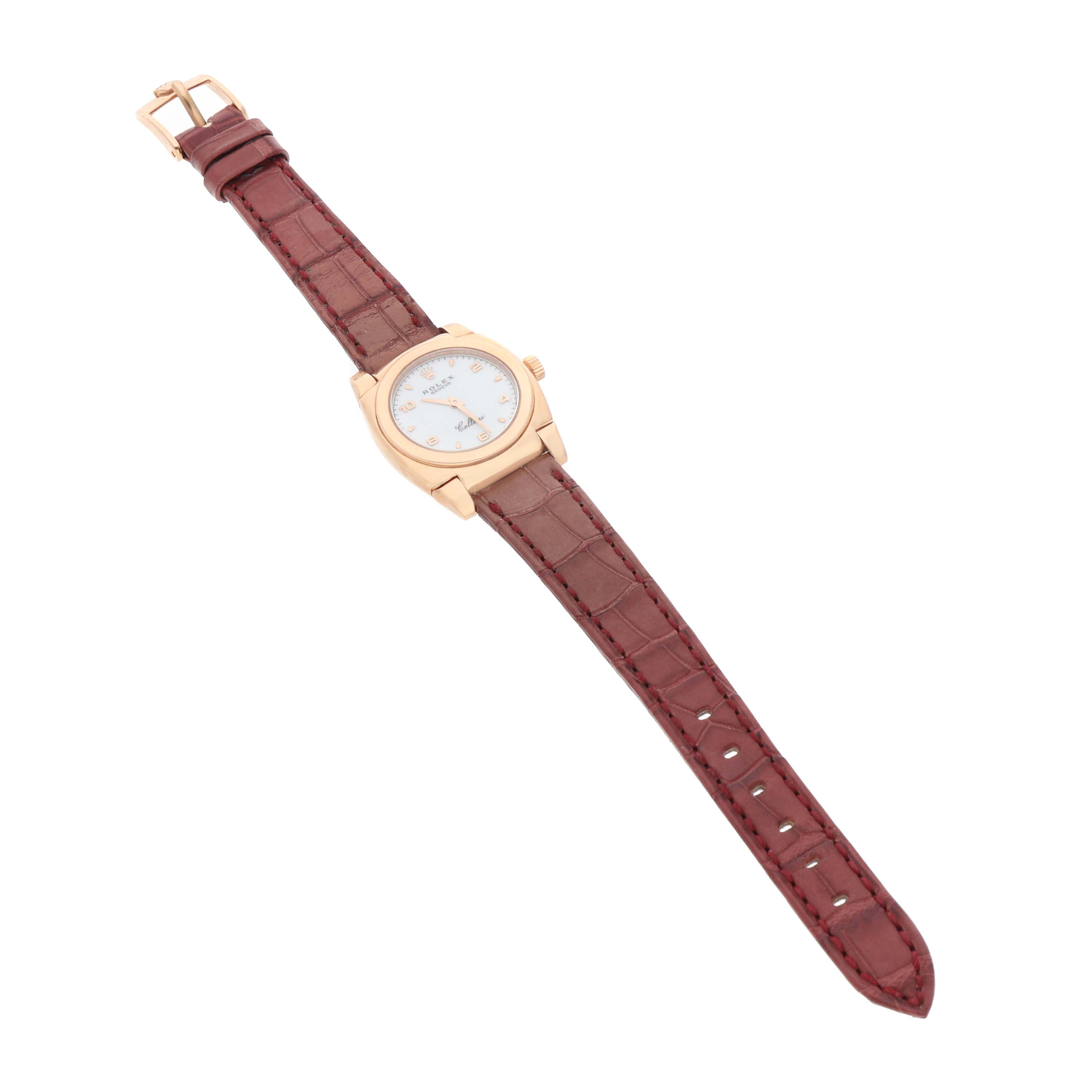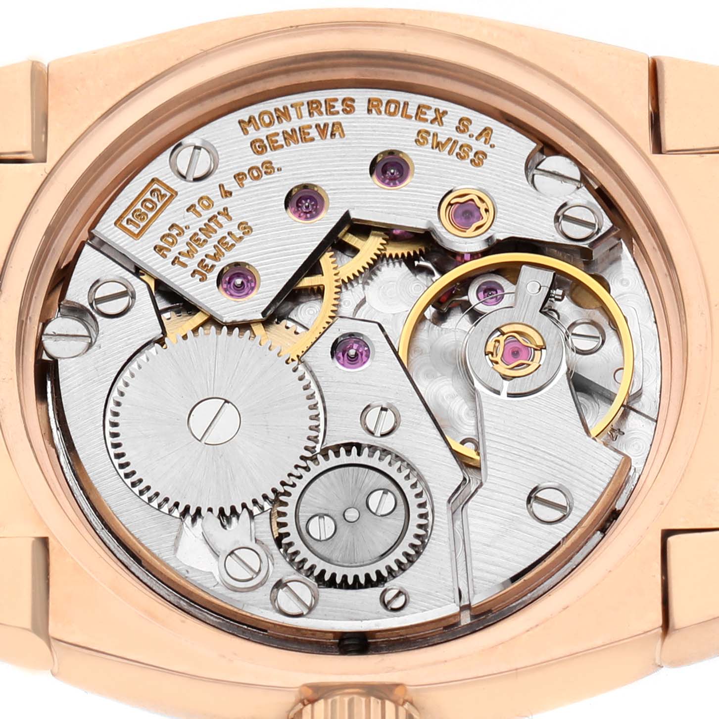 | Case: | 18k rose gold case 26.0 mm in diameter. Rolex logo on a crown. |