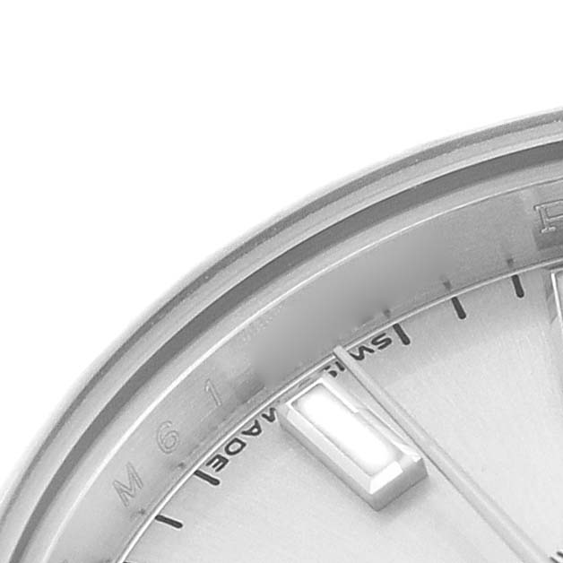 | Dial: | Silver dial with raised luminous baton hour markers. Date calendar at 3 o'clock aperture. |