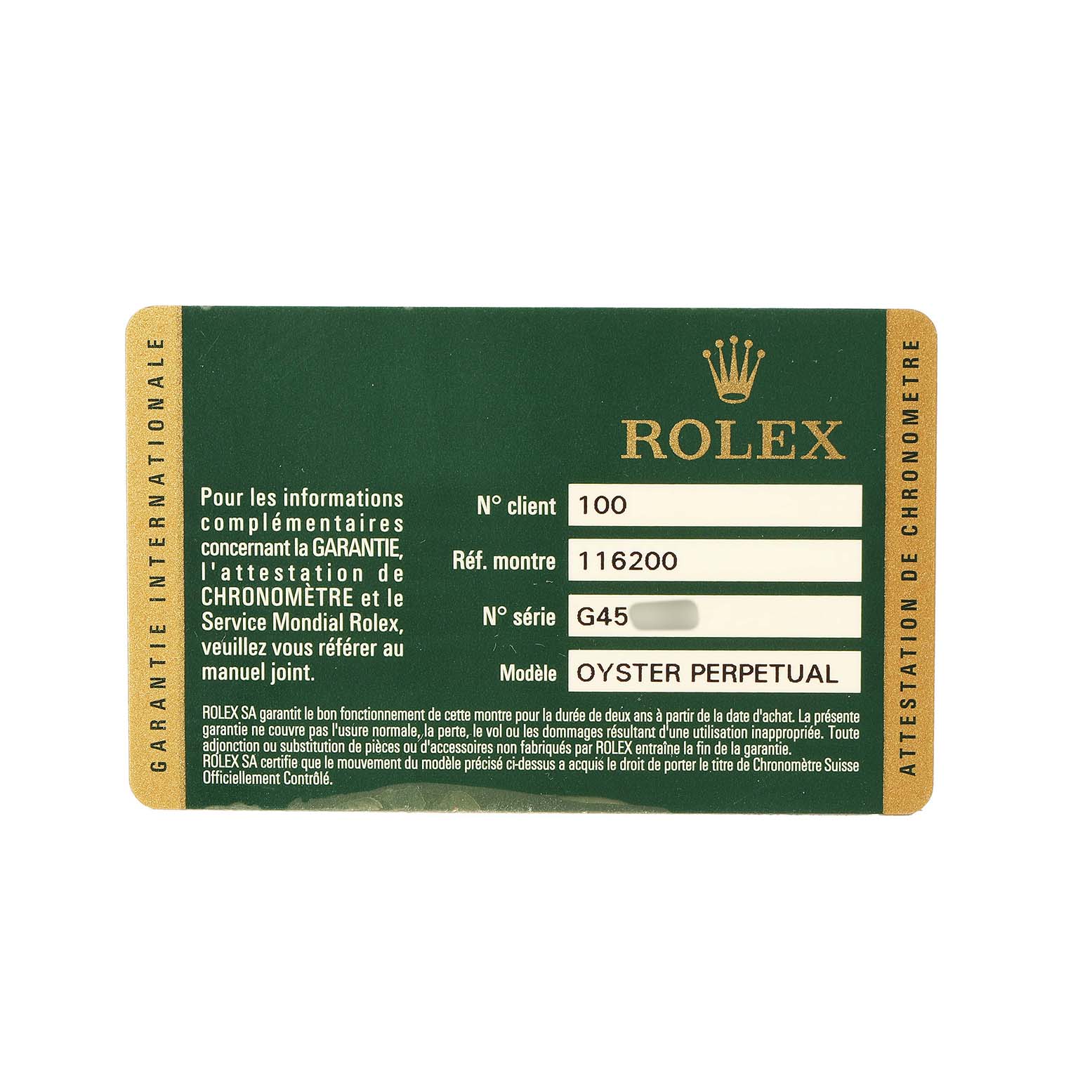 | Box & Papers: | Rolex card. Exclusive SwissWatchExpo Certificate of Authenticity. |