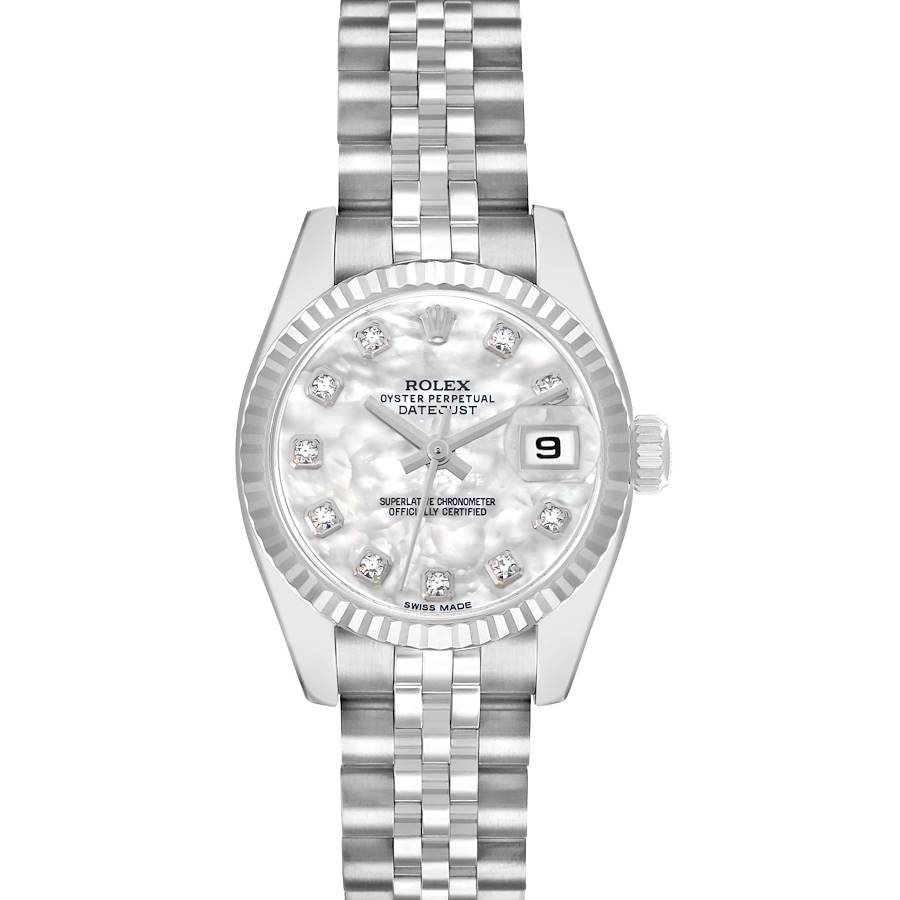 | Model Name: | Rolex Datejust Steel White Gold Diamond Mother Of Pearl Ladies Watch 179174 |