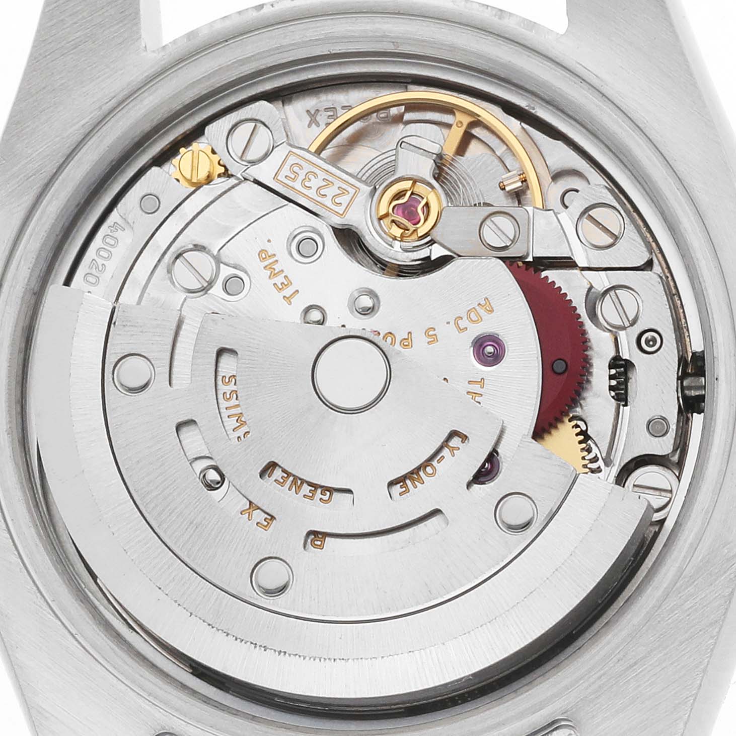 | Dial: | Mother of Pearl dial with white gold baton hands and original Rolex factory diamond hour markers. Date calendar at the 3 o'clock aperture. |