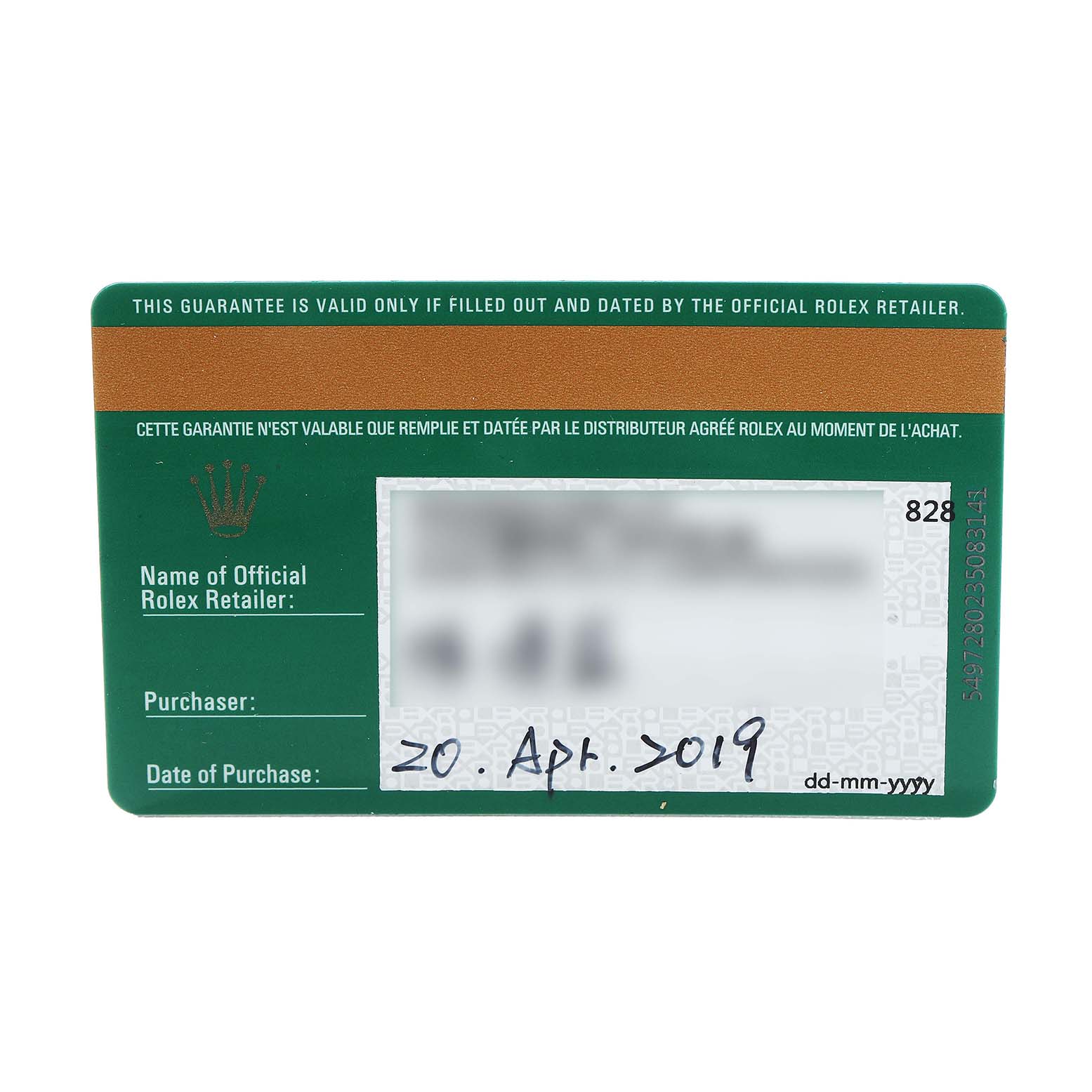 | Box & Papers: | Rolex card. Presentation non-Rolex box. Exclusive SwissWatchExpo Certificate of Authenticity. |