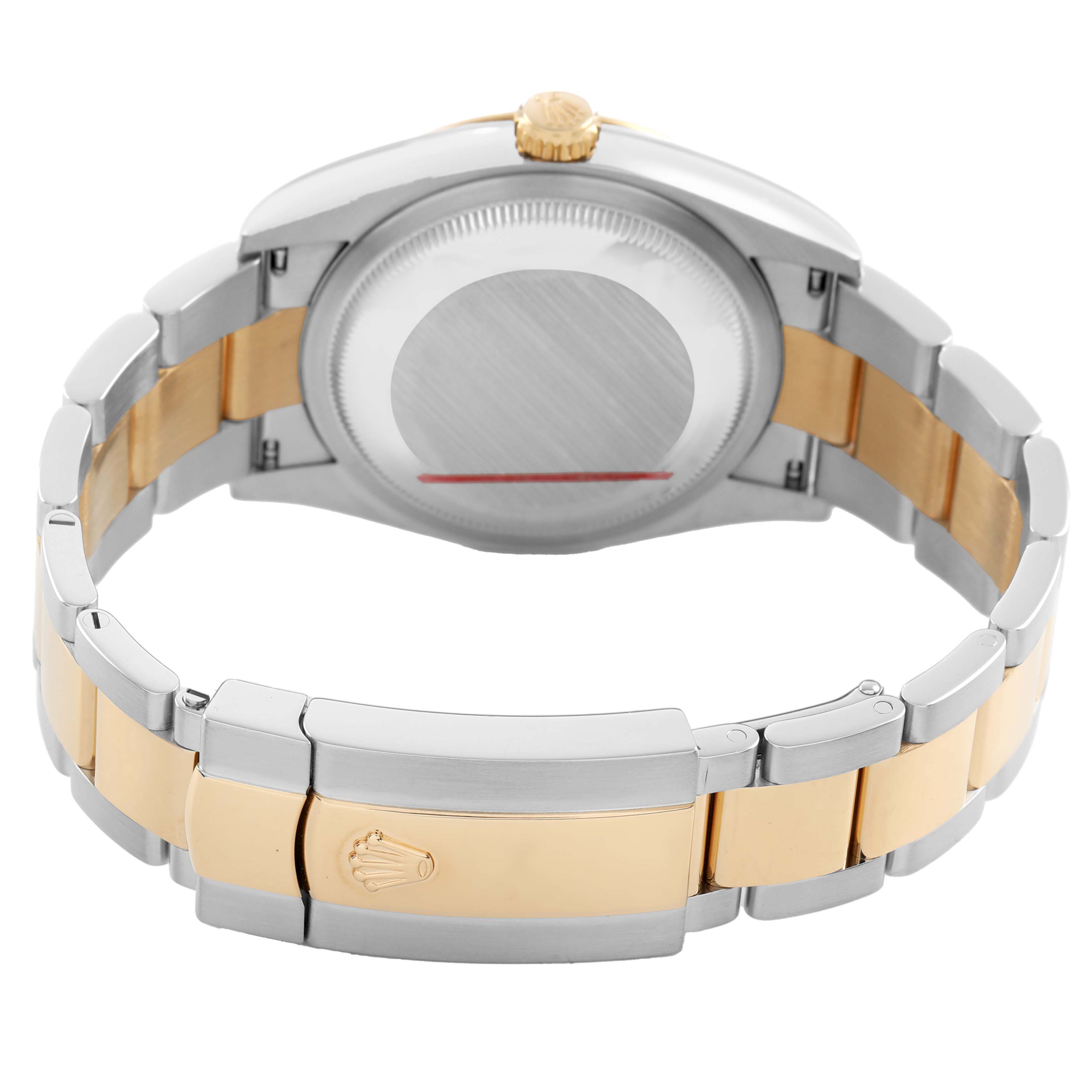 | Case: | Stainless steel case 36.0 mm in diameter. Rolex logo on an 18k yellow gold crown. |