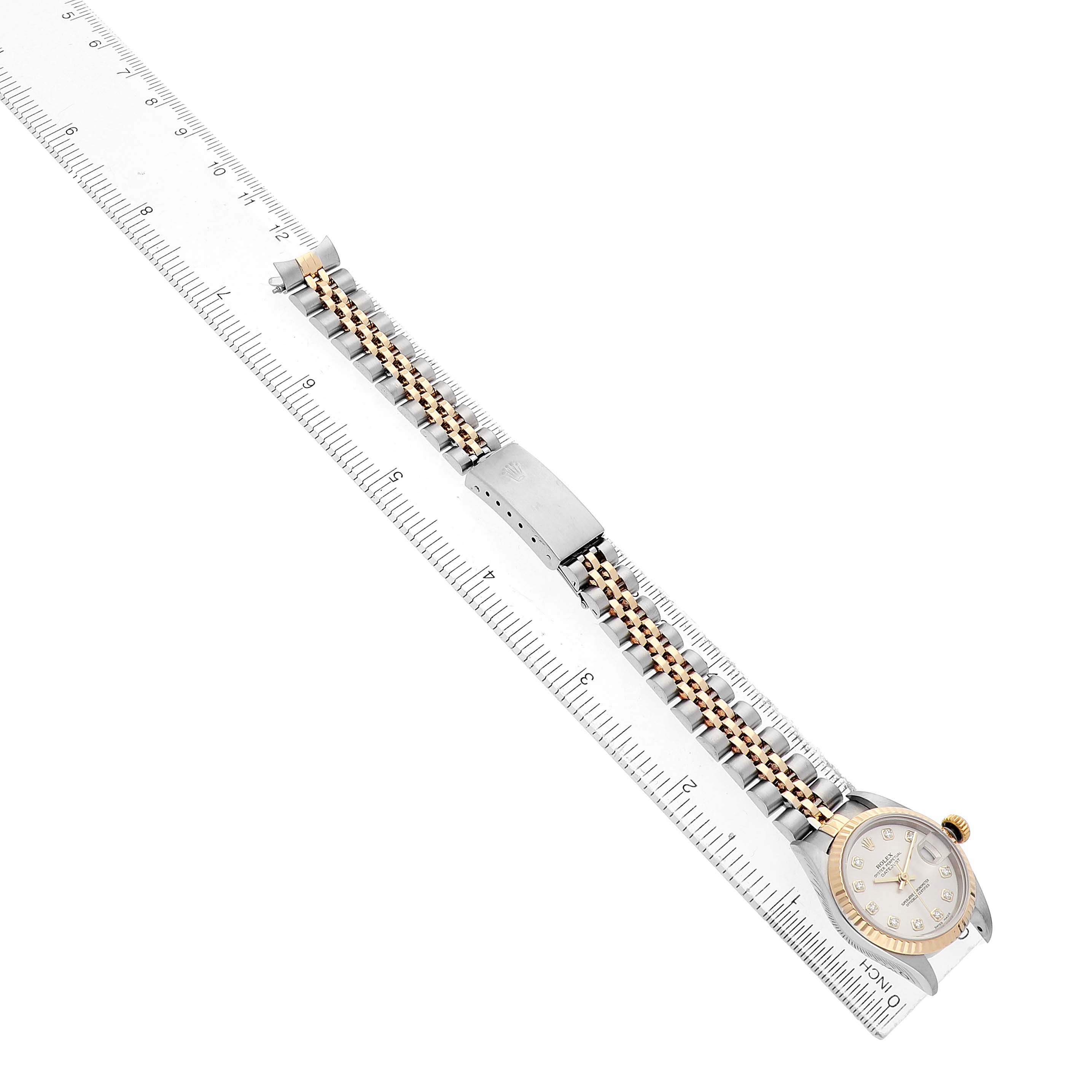 | Model Name: | Rolex Datejust Steel Yellow Gold Silver Diamond Dial Ladies Watch 79173 |