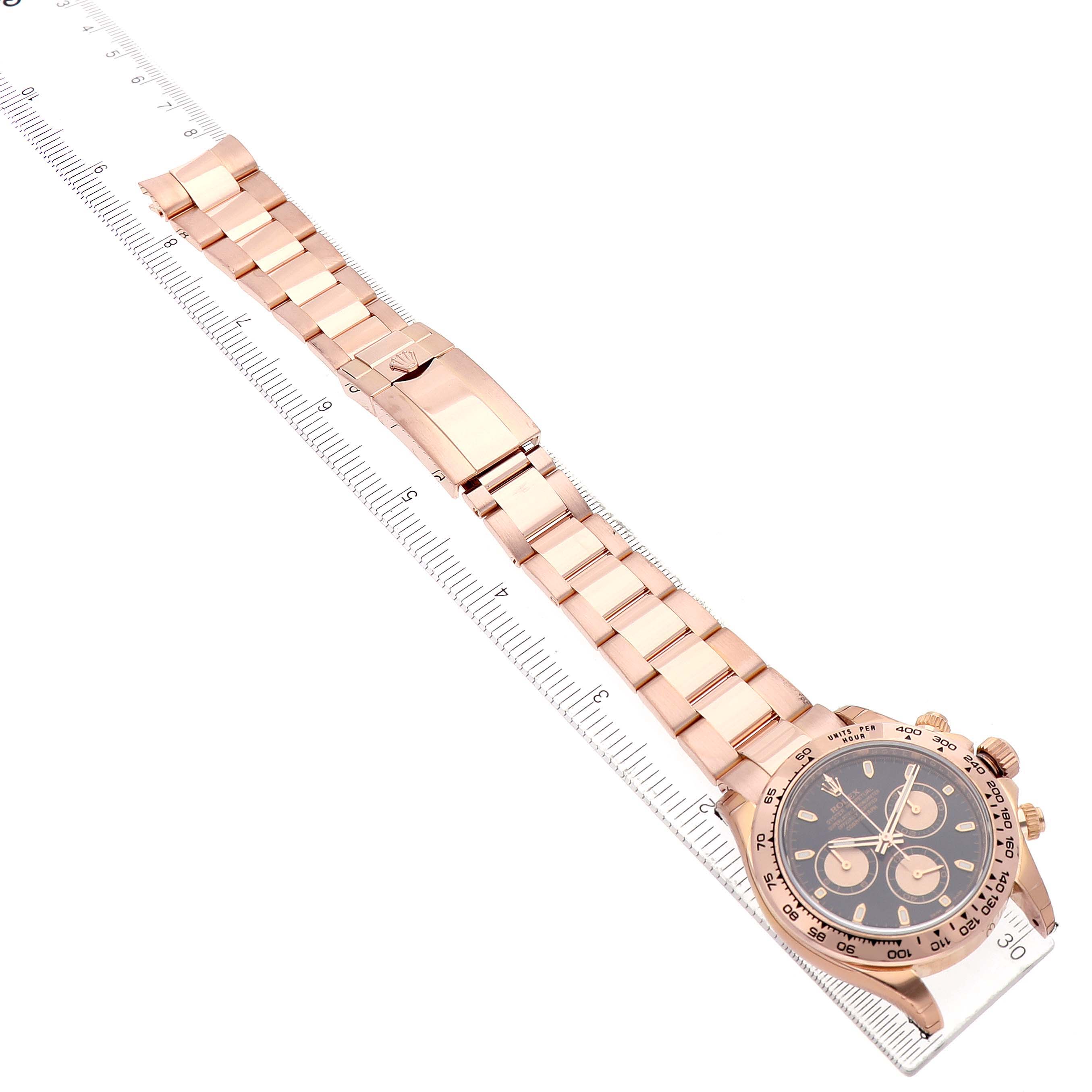 | Bezel: | 18k rose gold bezel with engraved tachymeter scale. |