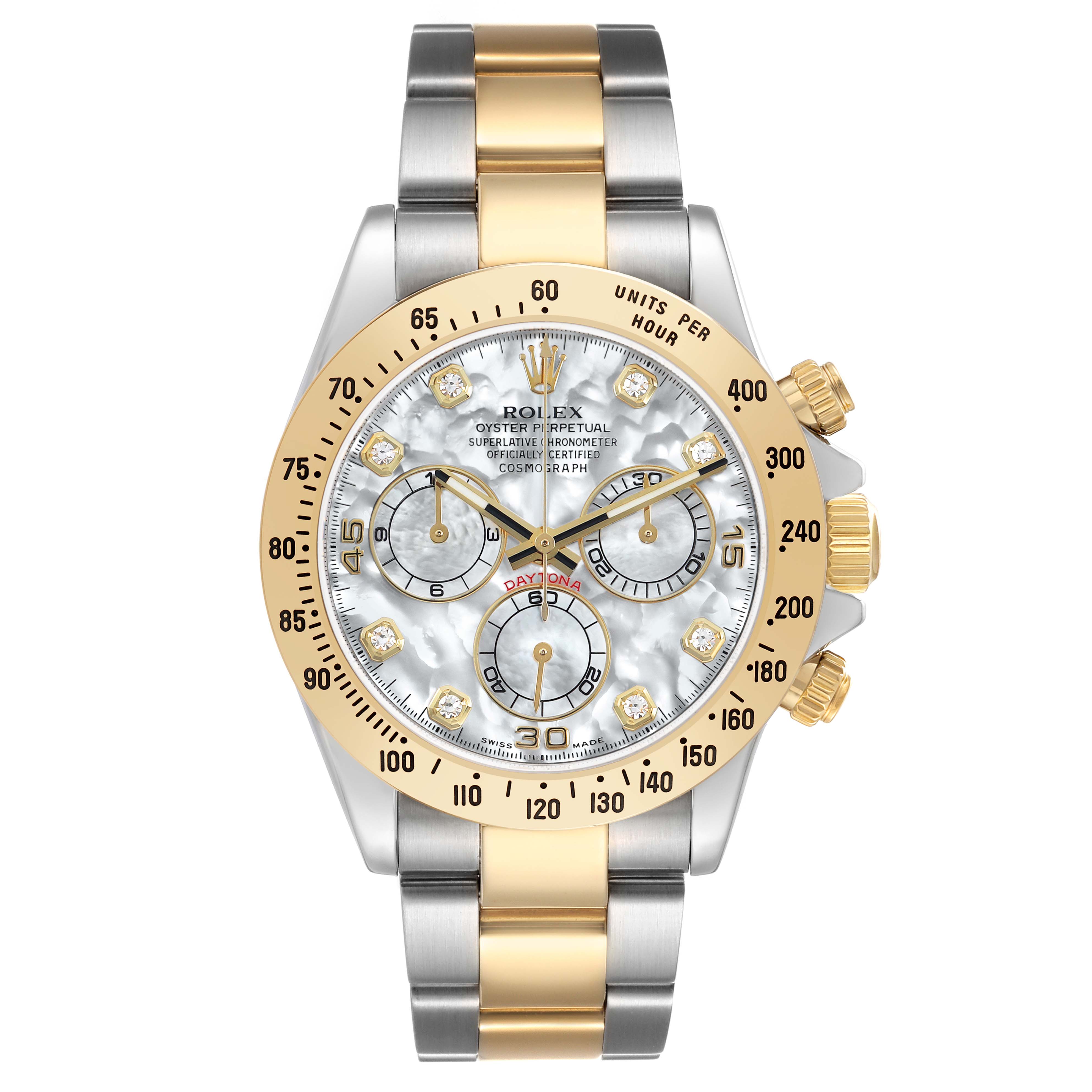 | Model Name: | Rolex Daytona MOP Diamond Dial Steel Yellow Gold Mens Watch 116523 Box |