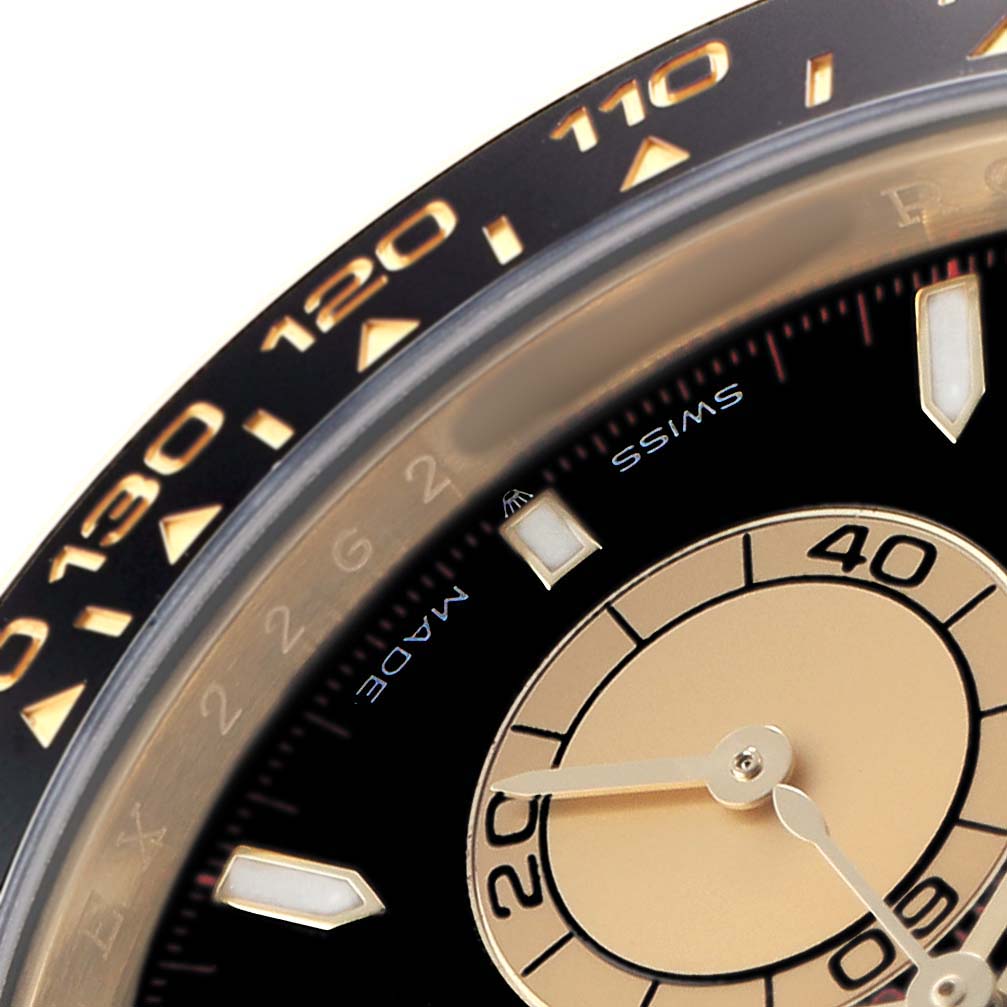 | Bezel: | 18K yellow gold black bezel with gold outlined tachymeter scale. |