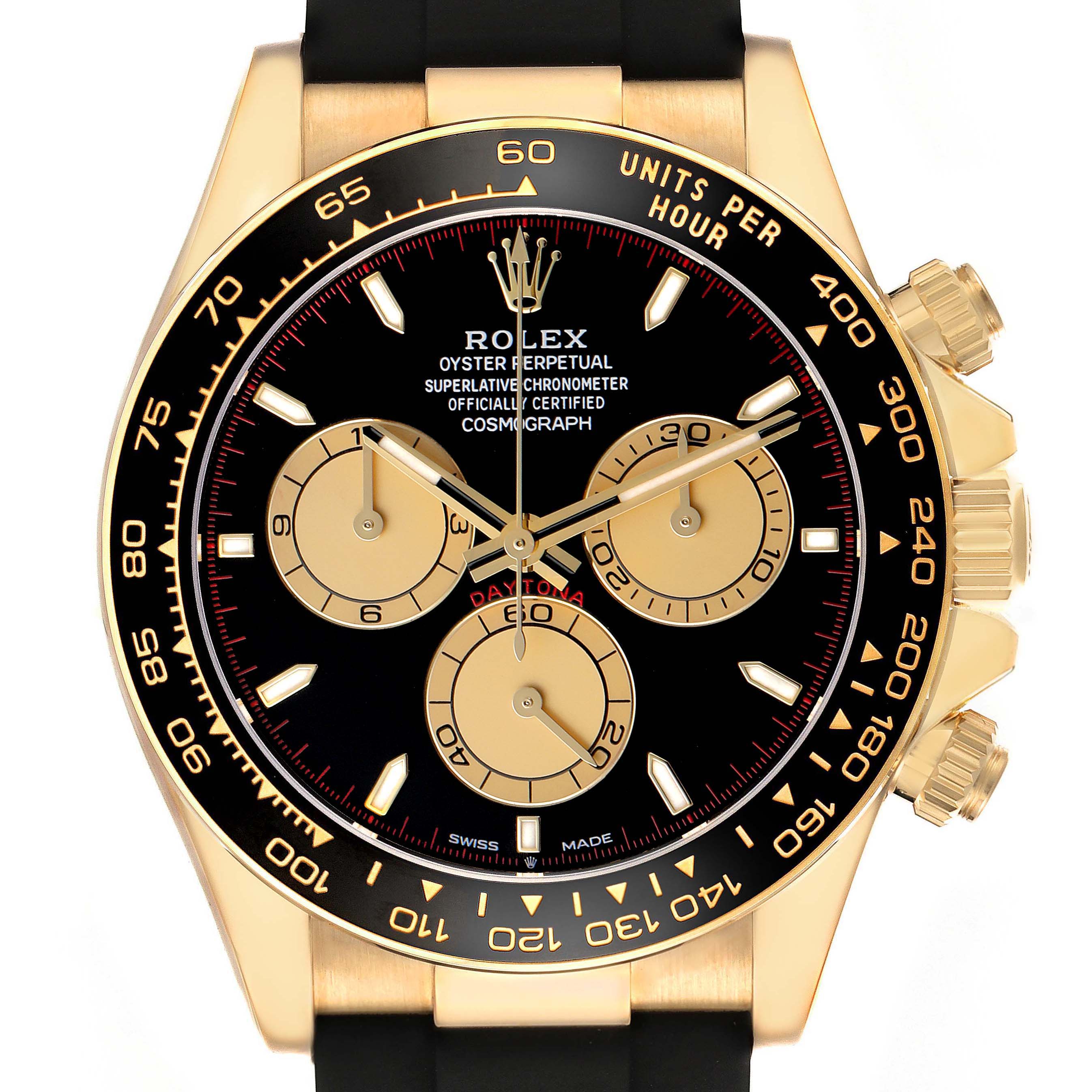 | Model Name: | Rolex Daytona Yellow Gold Black Dial Oysterflex Mens Watch 126518 |