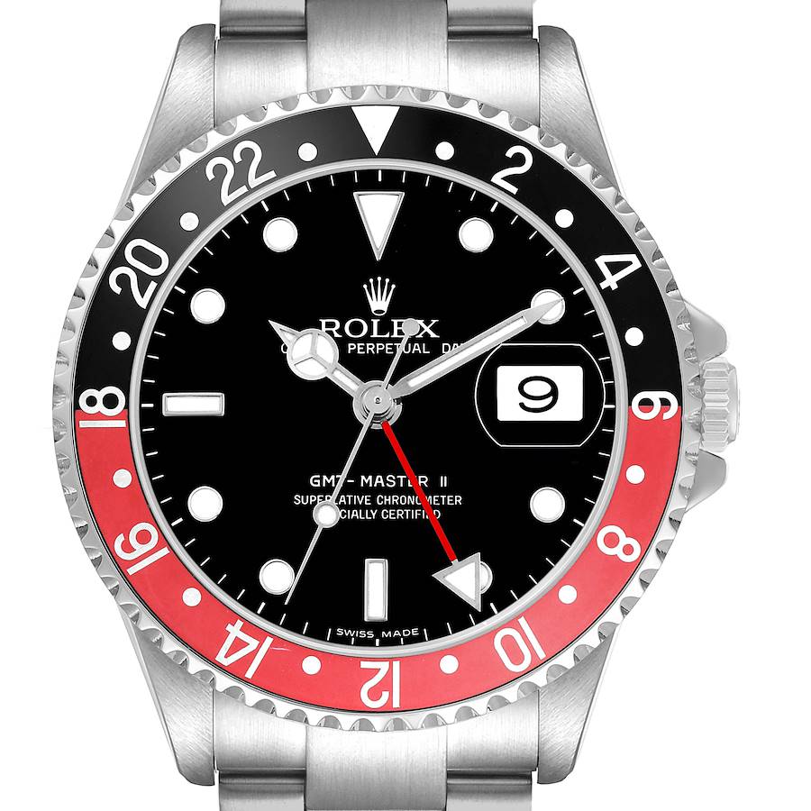 | Bezel: | Stainless steel bidirectional rotating GMT bezel with a 24-hour black and red "Coke" bezel insert. |