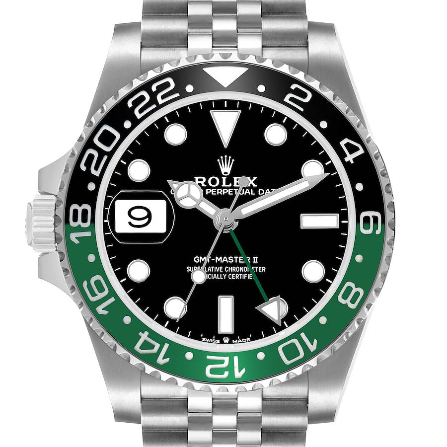 | Model Name: | Rolex GMT Master II Steel Sprite Green Black Bezel Mens Watch 126720 Card |