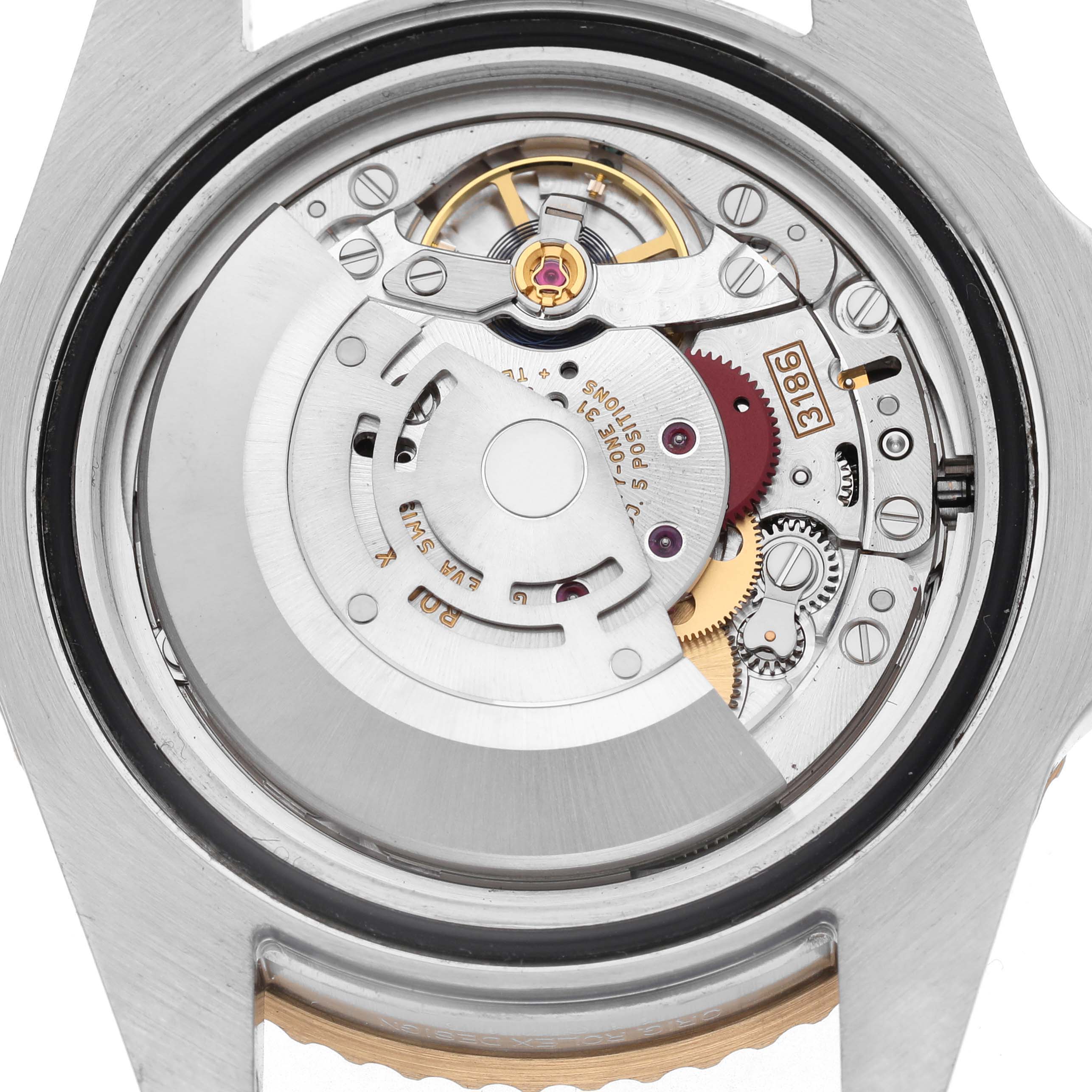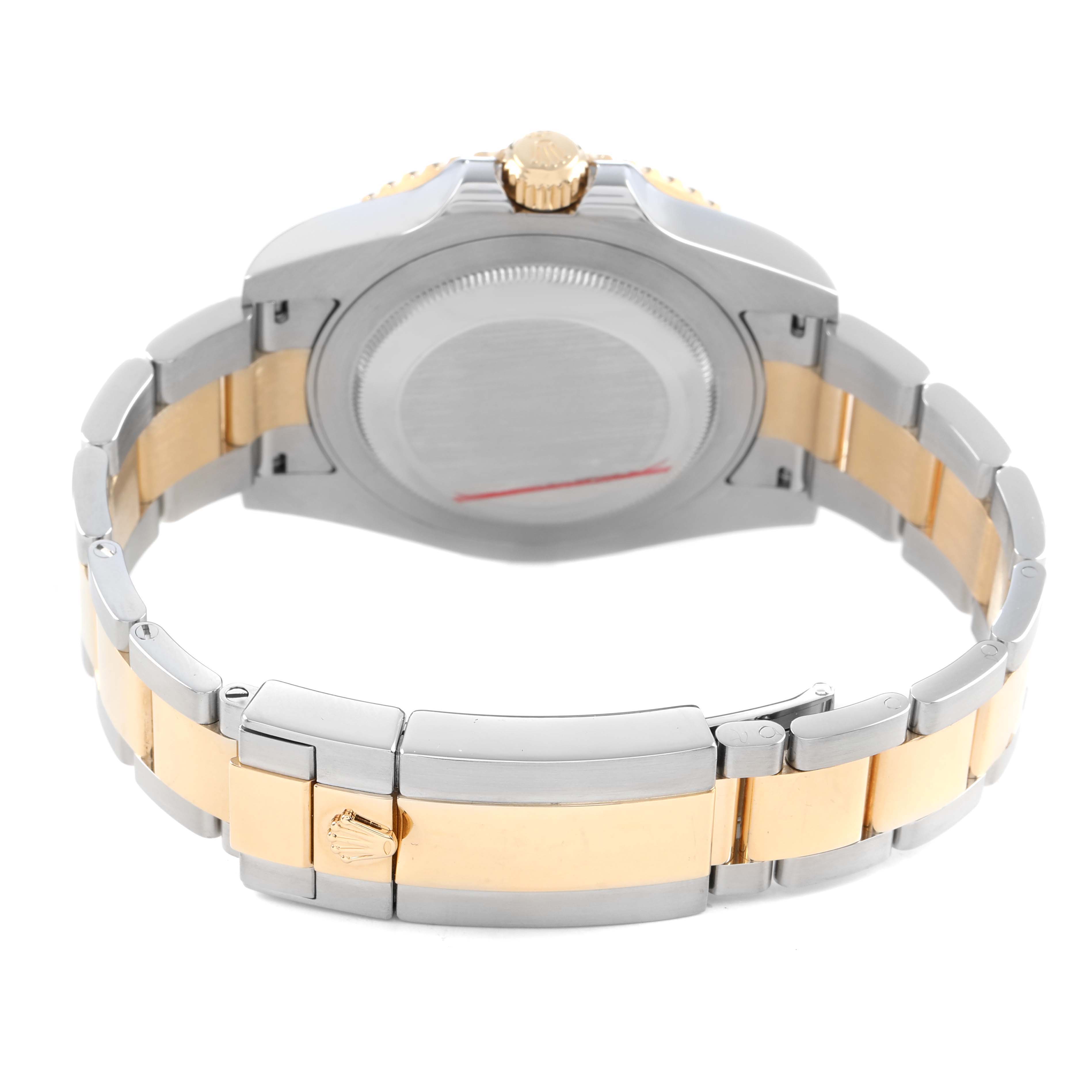Bezel: 18k yellow gold bidirectional rotating bezel with a special 24-hour black bezel insert.