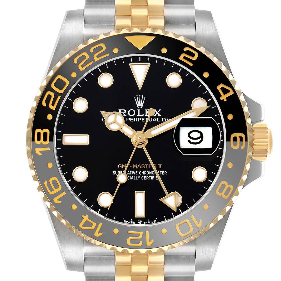 | Model Name: | Rolex GMT Master II Steel Yellow Gold Zombie Black Grey Watch 126713 Unworn |