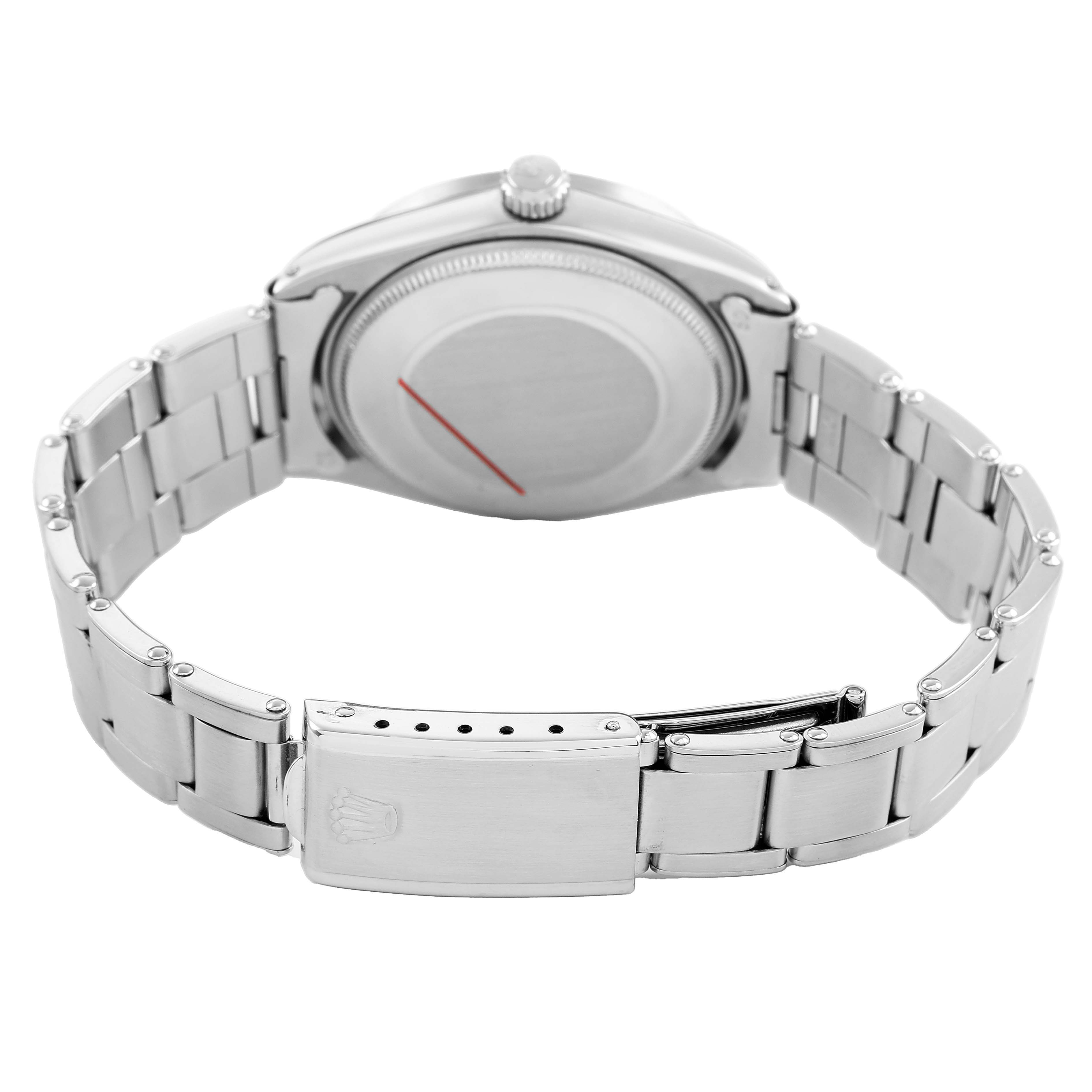 | Case: | Stainless steel oyster case 34.0 mm in diameter. Rolex logo on the crown. |