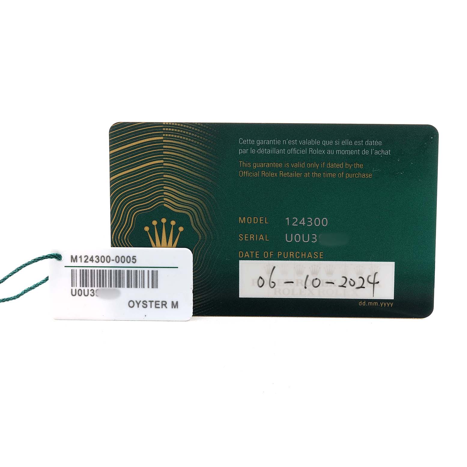 | Model Name: | Rolex Oyster Perpetual 41 Steel Green Dial Mens Watch 124300 Card |