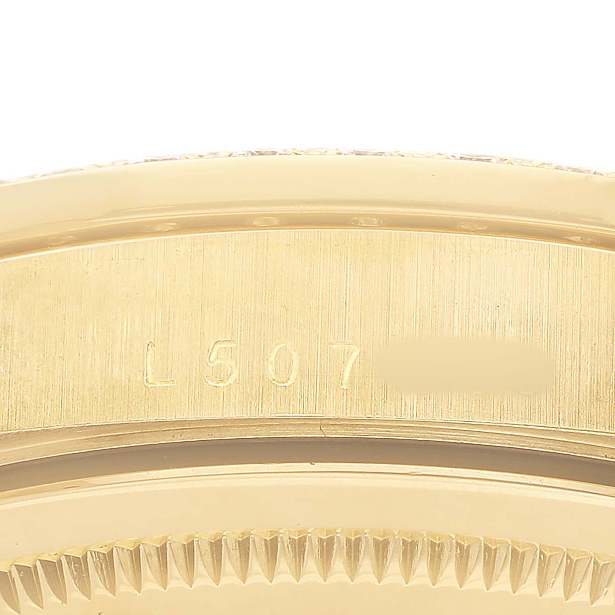 | Bezel: | 18k yellow gold original Rolex factory diamond bezel. |