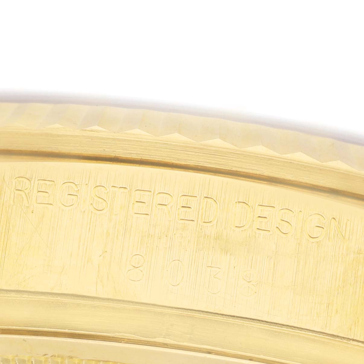 | Case: | 18k yellow gold oyster case 36.0 mm in diameter. Rolex logo on the yellow gold crown. |