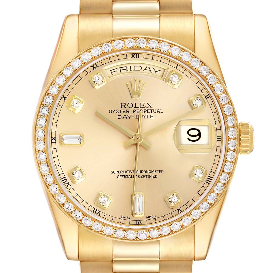 | Model Name: | NOT FOR SALE Rolex President Day-Date Yellow Gold Diamond Bezel Mens Watch 118348 PARTIAL PAYMENT |