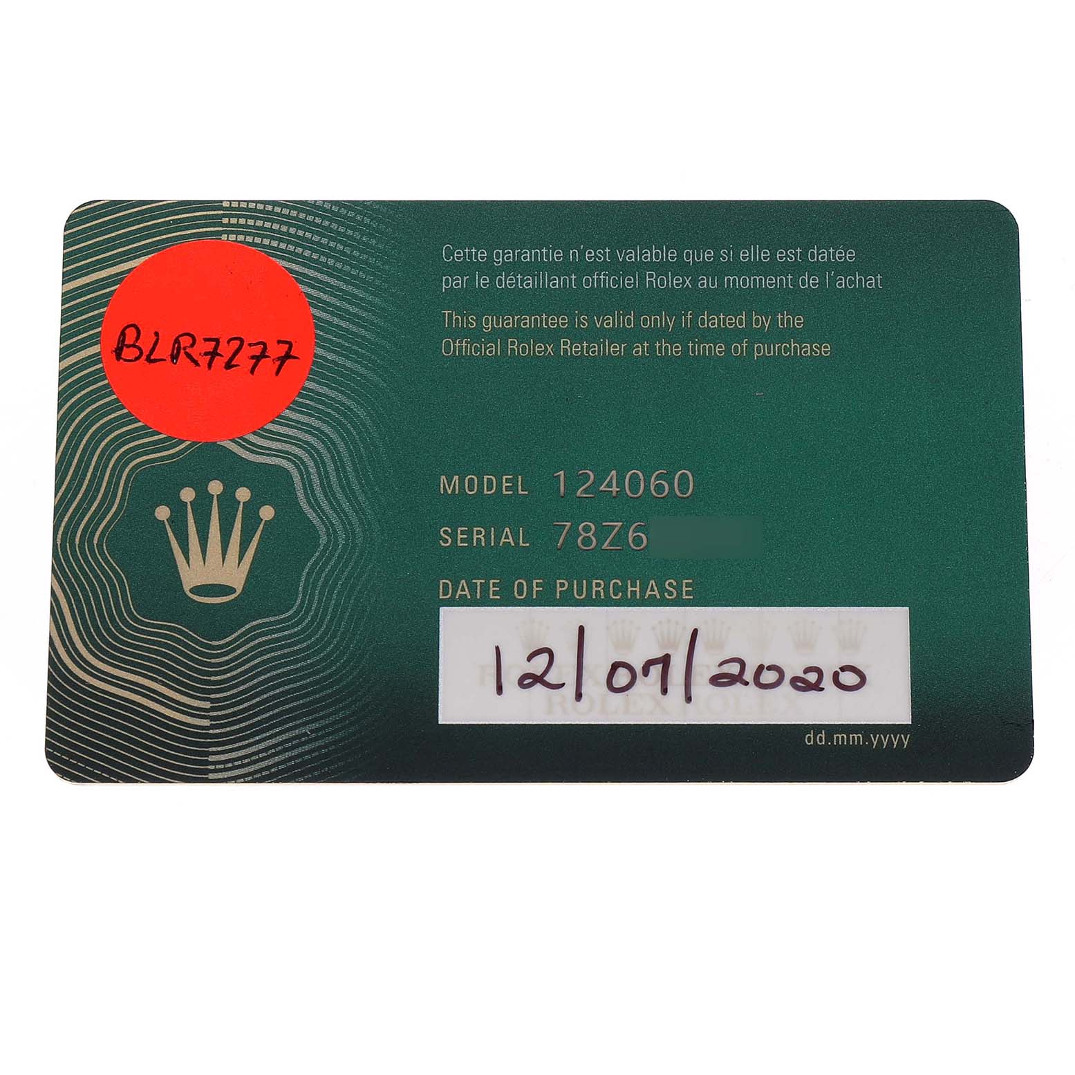 | Box & Papers: | Rolex card. Presentation non-Rolex box. Exclusive SwissWatchExpo Certificate of Authenticity. |