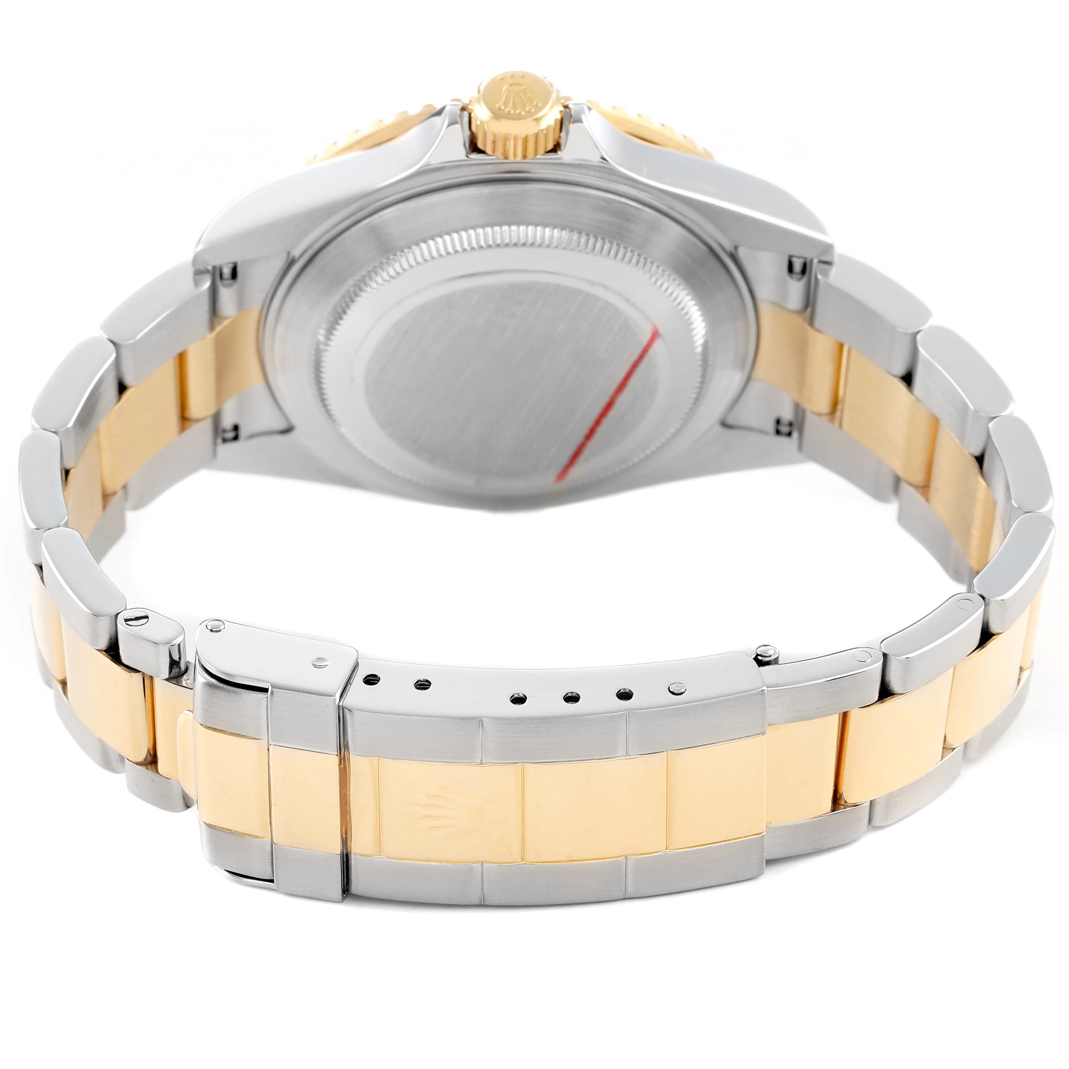 | Case: | Stainless steel and 18k yellow gold oyster case 40.0 mm in diameter. Rolex logo on the 18k yellow gold crown. Pointed crown guards. |