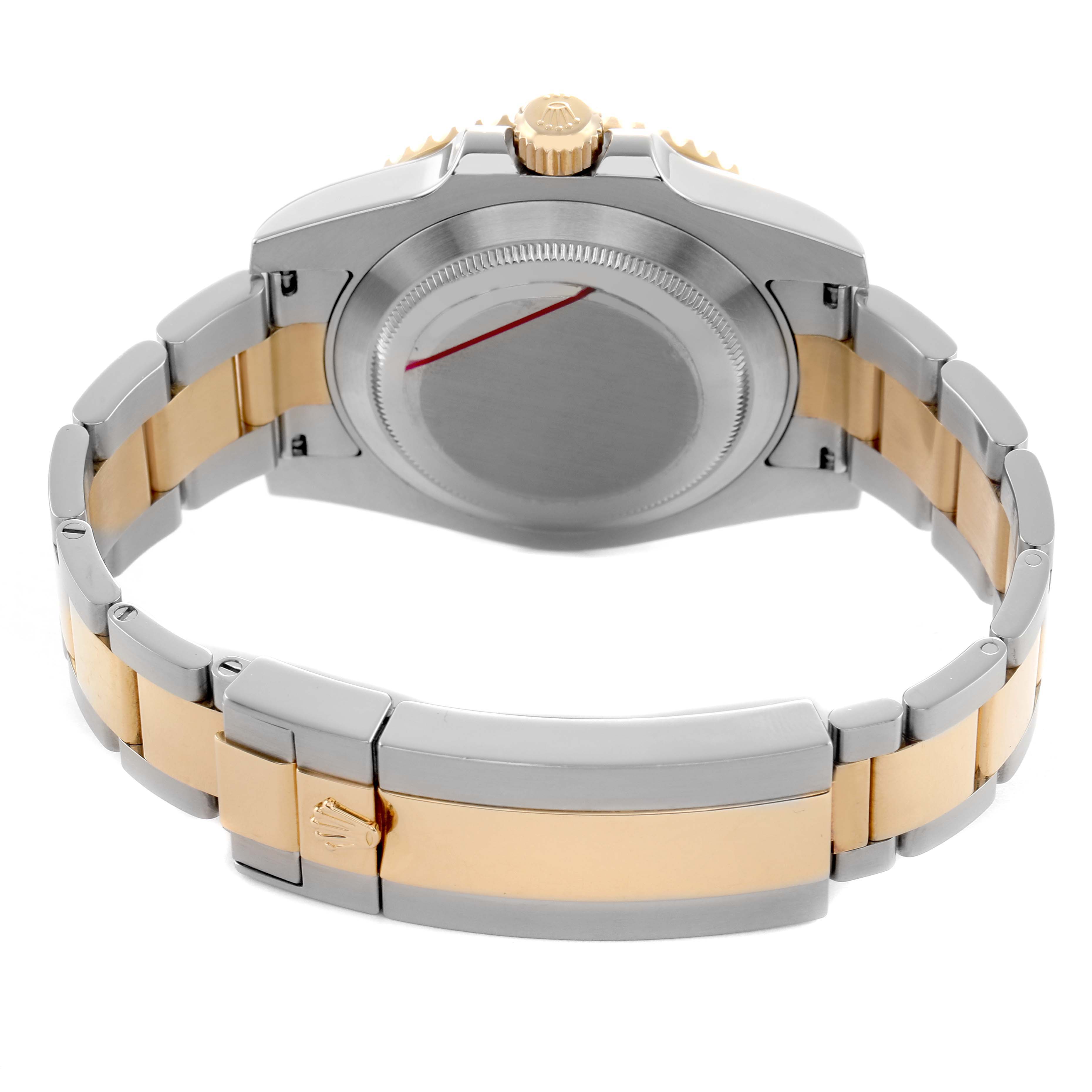 | Case: | Stainless steel and 18 yellow gold oyster case 40.0 mm in diameter. Rolex logo on the 18k yellow gold crown. Pointed crown guards. |